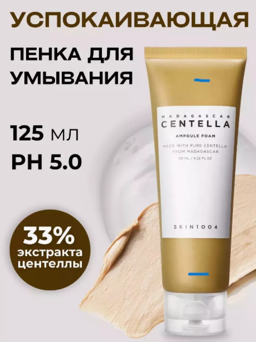 Пенка SKIN1004 Madagascar Centella Ampoule Foam удаляет загрязнения, ороговевшие клетки и излишки себума, не приводит к сухости и не вызывает ощущения стянутости.