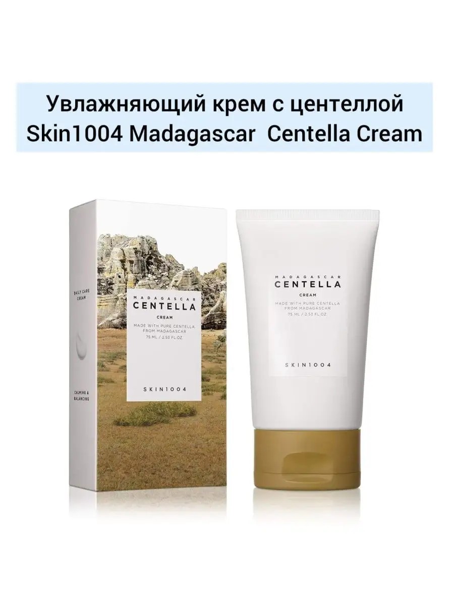 SKIN1004 Madagascar Centella Cream 75ml - интенсивный регенерирующий крем для лица, помимо центеллы, в своем составе имеет такие мощные ингредиенты, как масла ши, лаванды, оливы, апельсина, сквалан, аденозин, керамиды и гиалуроновые кислоты. Действие крема направлено на увлажнение, питание, восстановление и борьбу с фотостарением. Крем мягко разглаживает морщинки и придает коже лица ухоженный вид и красивый естественный цвет. Основной компонент крема **9,8% экстракта центеллы азиатской**, который применяется для лечения различных кожных проблем, он обладает антисептическим действием, усиливает выработку коллагена, обладает заживляющими свойствами, успокаивает проблемные участки кожи, регулирует выработку кожного сала. Крем подходит для кожи, подверженной воспалениям, применяется для сглаживания шрамов и постакне. Способ применения На очищенную кожу нанесите достаточное количество крема, слегка помассируйте для лучшего впитывания. SKIN1004. Корейский крем. крем для жирной, проблемной кожи.скин