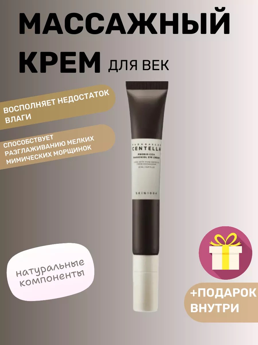 Укрепляющий массажный крем для век с бакучиолом SKIN1004 Probio-Cica Bakuchiol Eye Cream оказывает выраженное уплотняющее действие, восстанавливает целостности липидной мантии, восполняет недостаток влаги и интенсивно увлажняет. Способствует разглаживанию мелких мимических морщинок и сокращает их глубину.