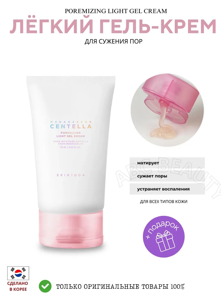 Лёгкий гель-крем для сужения пор SKIN1004 Madagascar Centella Poremizing Light Gel Cream нормализует работу сальных желёз и выработку кожного сала в течение дня, матирует и не провоцирует появление сухости. Оказывает успокаивающее действие, уменьшает область покраснений и зуда, способствует заживлению воспалений.
