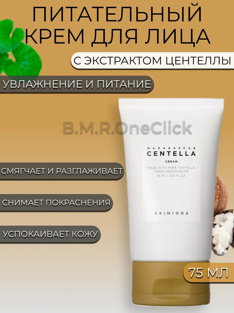 Интенсивный регенерирующий крем на основе экстракта центеллы Skin1004 Madagascar Centella Cream обгащён такими мощными компонентами как, масла ши, лаванды, оливы и апельсина, сквалан, аденозин, керамиды и разномолекулярные гиалуроновые кислоты. Крем интенсивно увлажняет, питает и восстанавливает кожу, мягко разглаживает морщинки. Сквалан укрепляет защитный барьер кожи, поддерживает её эластичность. Ниацинамид выравнивает тон, осветляет пигментацию, нормализует себорегуляцию. 4 вида керамидов удерживают влагу в коже, препятствуя обезвоживанию, продлевают молодость. Слабокислотный крем имеет pH 6. Гипоаллергенно. Выпускается в двух объёмах: 75 мл и 30 мл.