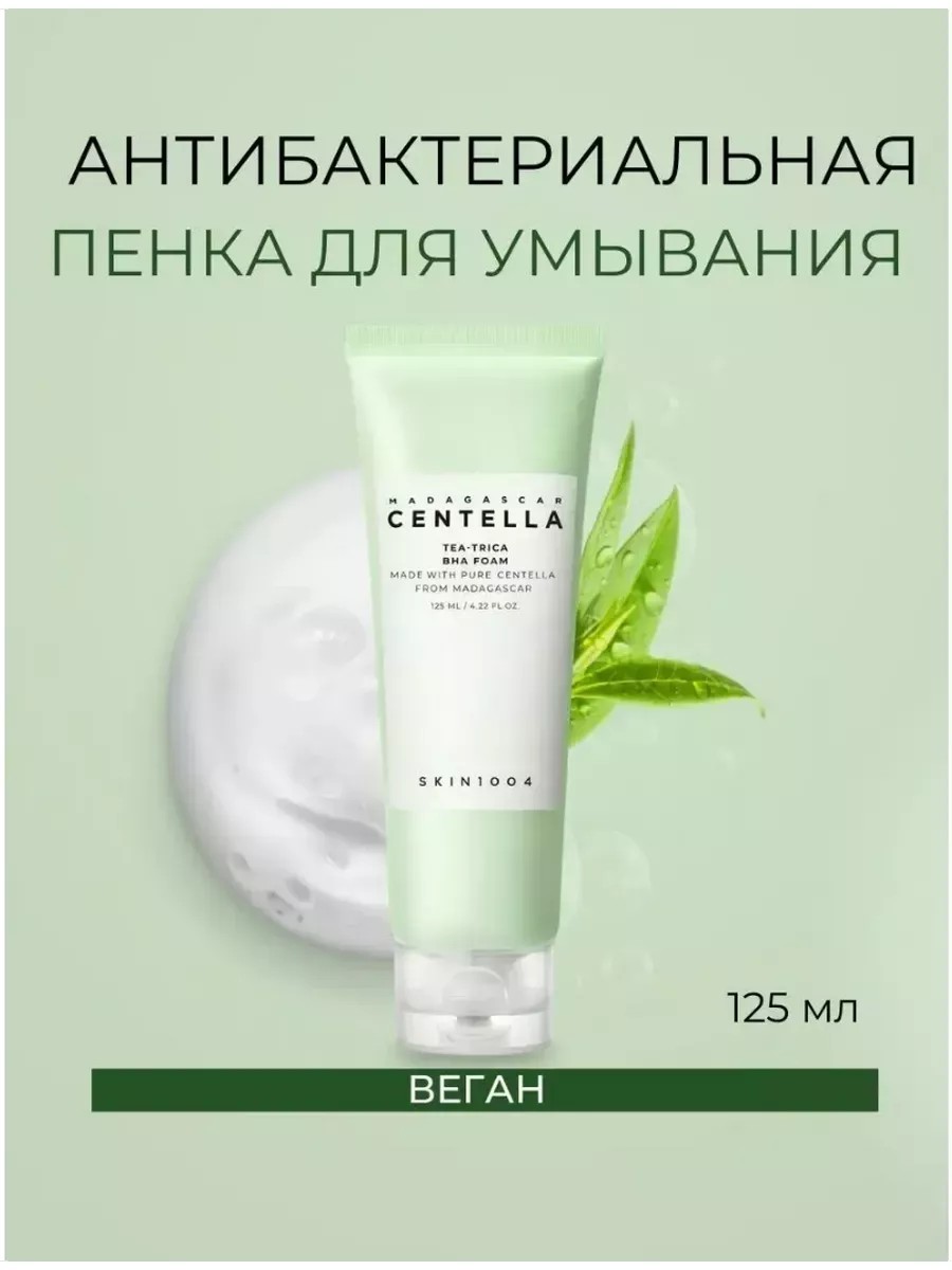 Антибактериальная пенка для умывания SKIN1004 Madagascar Centella Tea-Trica BHA Foam эффективно лечит акне, борется с воспалениями и препятствует их повторному появлению. Нормализует работу сальных желёз, снижает жирность кожи и матирует. Содержит экстракты чайного дерева, центеллы азиатской, сосны и какао-бобов, ВНА-кислоту. Средство эффективно удаляет все загрязнения и глубоко очищает, помогая избавиться от чёрных точек и забитых пор. Деликатно отшелушивает, разглаживает рельеф и стимулирует процессы регенерации. В составе пенки основной компонент - комплекс Tea-Trica, в состав которого вошли чайное дерево, центелла. Комплекс помогает успокоить раздраженную и воспаленную кожу, способствует улучшению состояния кожи при ранах и других проблемах. Пенка обладает легкой кремовой текстурой, которая при контакте с водой, превращается в нежную вязкую пенку, обеспечивая глубокое очищение кожи. Идеально подходит для жирной, проблемной и комбинированной кожи лица.