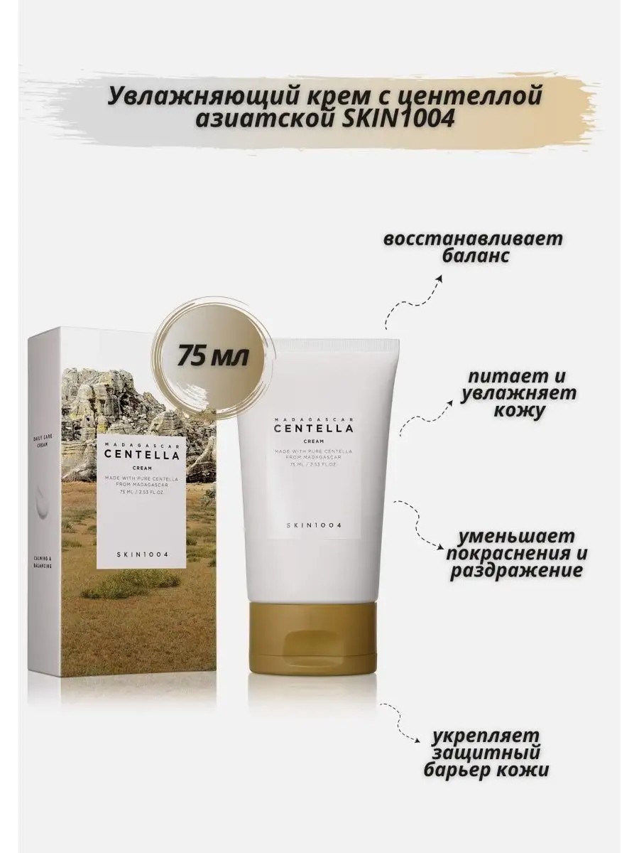 Увлажняющий крем с центеллой азиатской SKIN1004 Madagascar Centella Cream с легкой текстурой и успокаивающим эффектом идеально подойдет для проблемной и чувствительной кожи.Крем питает и увлажняет кожу, восстанавливает баланс, уменьшает покраснения и раздражение, укрепляет защитный барьер кожи.Экстракт азиатской центеллы обладает антисептическим действием, улучшает выработку коллагена, делает поры менее заметными, обладает выдающимися заживляющими свойствами, успокаивает проблемные области за короткое время, снижает выработку кожного жира.