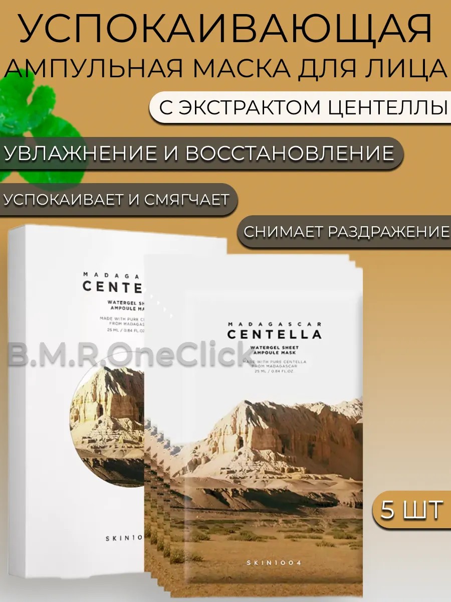 This water-based sheet mask from the Korean brand SKIN 1004 is infused with a serum based on centella asiatica extract and fresh meadow mint oil, which is easily absorbed and quickly soothes sensitive skin. This dense gel mask with a triple moisturizer content is completely absorbed and deeply hydrates the skin. FEATURES OF THE COMPOSITION: At SKIN1004, we believe that high-quality cosmetics are, first and foremost, high-quality ingredients. That's why we use Madagascar centella in our Centella Line. Centella Line products contain only the most essential ingredients. No irritating additives. Only gentle skin care. HOW TO USE: Apply the mask for 10-20 minutes. After removing, massage your face with patting movements and allow the remaining product to be absorbed.