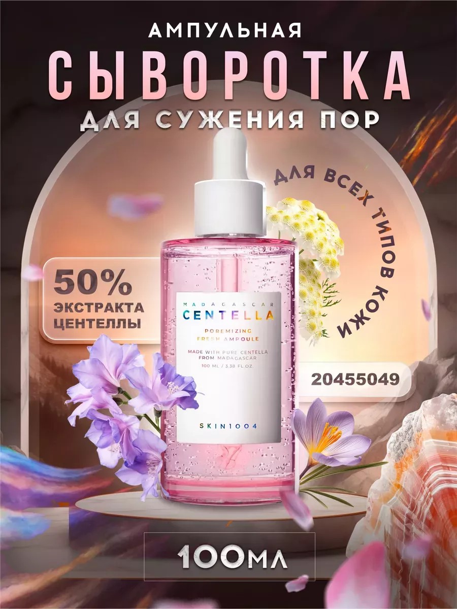 Madagascar Centella Poremizing Fresh Ampoule от корейского бренда SKIN1004 - уникальный косметический продукт, обогащенный активными компонентами и способный эффективно справляться с проблемами на лице. Центелла азиатская известна своими успокаивающими и восстанавливающими свойствами. Этот натуральный ингредиент выравнивает тон и улучшает текстуру кожи, делая ее более гладкой и упругой. Комплекс из 9 пептидов разглаживает рельеф, как антивозрастные и омолаживающие крема, подтягивает, гарантирует сужение расширенных пор и стимулирует синтез коллагена (collagen), что позволяет бороться с возрастными изменениями, уменьшая мелкие морщины и дряблость. Пантенол, он же витамин B5, успокаивает и увлажняет. Помогает уберечь от воспалений, обеспечивая защиту от вредных факторов. Гималайская розовая соль обладает антисептическим действием, очищает ткани и устраняет излишки жира, предотвращая появление черных точек и прыщей. Экстракт алоэ вера имеет противовоспалительную функцию, а гиалуроновая кислота мощную увлажняющую и питательную. Себорегулирующая сыворотка идеальна для ежедневного дневного и ночного ухода взрослым женщинам, девушкам и девочкам подросткам. Сужающая ампула skin 1004 подходит для всех типов дермы, включая чувствительную, проблемную, сухую и комбинированную. Уходовое средство с лифтинг эффектом, произведенное в Корее, находится в удобном флаконе с пипеткой, быстро впитывается, не оставляя ощущения липкости и жирного блеска. Можно использовать как базу под макияж. Профессиональная органическая косметика не содержит парабенов, сульфатов, искусственных красителей и ароматизаторов. Женский флюид - отличное решение для тех, кто хочет заботиться о своем здоровье и красоте. Продукция поможет в борьбе с несовершенствами и придаст здоровый сияющий внешний вид. Не упустите возможность приобрести товар и наслаждаться прекрасными результатами от его применения!