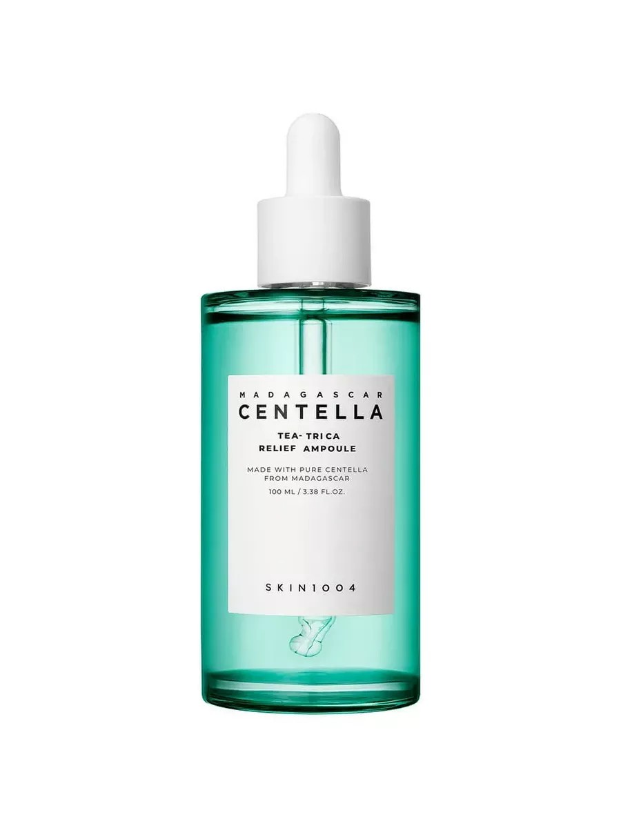 ОРИГИНАЛ Успокаивающая ампула для проблемной кожи SKIN1004 Madagascar Centella Tea-Trica Relief Ampoule — SOS-средство от прыщей и воспалений, которое помогает в борьбе с акне, смягчает кожу, уменьшает покраснение и раздражение. Продукт нормализует чрезмерную выработку кожного сала, устраняет жирный блеск и предотвращает появление чёрных точек. Некомедогенная формула содержит высокую концентрацию гидролата чайного дерева, центеллу из Мадагаскара и комплекс Anti-Sebum P.