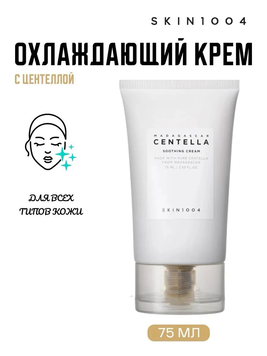 SKIN1004 Madagascar Centella Soothing Cream moisturizes and softens irritated, flaky skin, pleasantly cooling and reducing sensitivity. It reduces redness, accelerates healing, eliminates dryness and tightness, and restores the damaged protective barrier. This refreshing, dense cream-gel absorbs easily without leaving a sticky film. The mildly acidic formula contains 72% centella asiatica extract, derived from a plant native to Madagascar. Centella extract soothes, combats inflammation, reduces signs of rosacea, strengthens blood vessel walls, and prevents the appearance of spider veins. COMPOSITION (INFORMATION FROM PACKAGING) Centella Asiatica Extract (72%), Glycerin, Propanediol, Dipropylene Glycol, Cyclomethicone, Water, 1, 2 - Hexanediol, Trehalose, Caprylyl Methicone, C12 - 14 Pareth - 12, Carbomer, Tromethamine, Ammonium Acryloyldimethyltaurate/VP Copolymer, C30 - 45 Alkyl Cetearyl Dimethicone Crosspolymer, Xanthan Gum, Mentha Piperita Leaf (Peppermint) Extract, Zingiber Officinale (Ginger) Root Extract, Butylene Glycol, Ethylhexylglycerin, Dipotassium Glycyrrhizate, Tranexamic Acid, Coptis Chinensis Root Extract, Theobroma Cacao (Cocoa) Extract, Dextrin, Leuconostoc/Radish Root Ferment Filtrate, Biosaccharide Gum - 1, Disodium EDTA, Sodium Hyaluronate, Beta-Glucan, Ceramide EOP, Ceramide NS, Ceramide NP, Ceramide AP, Phytosphingosine, Hydrogenated Lecithin, Cetearyl Alcohol, Stearic Acid, Cholesterol.