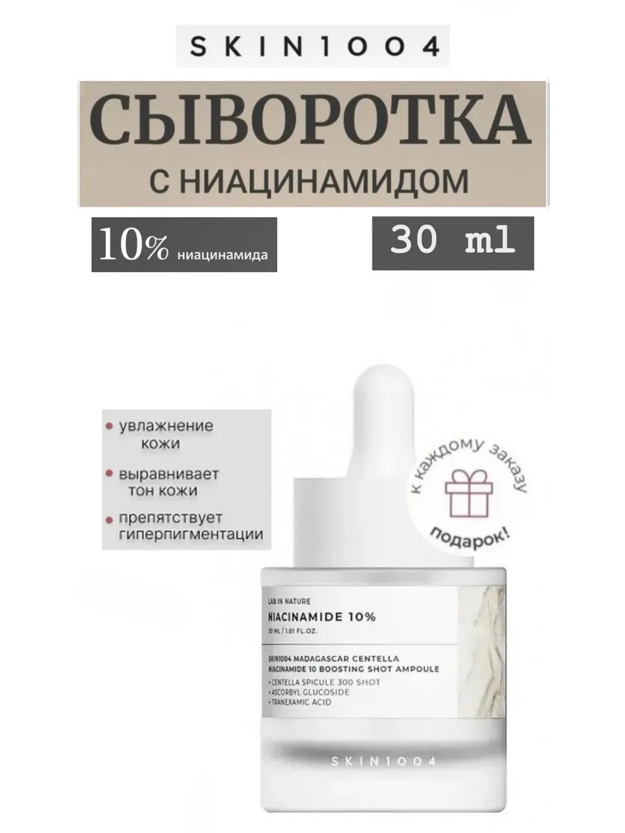 | Полное наименование товара | Тонизирующая сыворотка для сияния кожи и ухода за порами Skin 1004 Madagascar Centella Niacinamide 10 Boosting Shot Ampoule, 30ml |