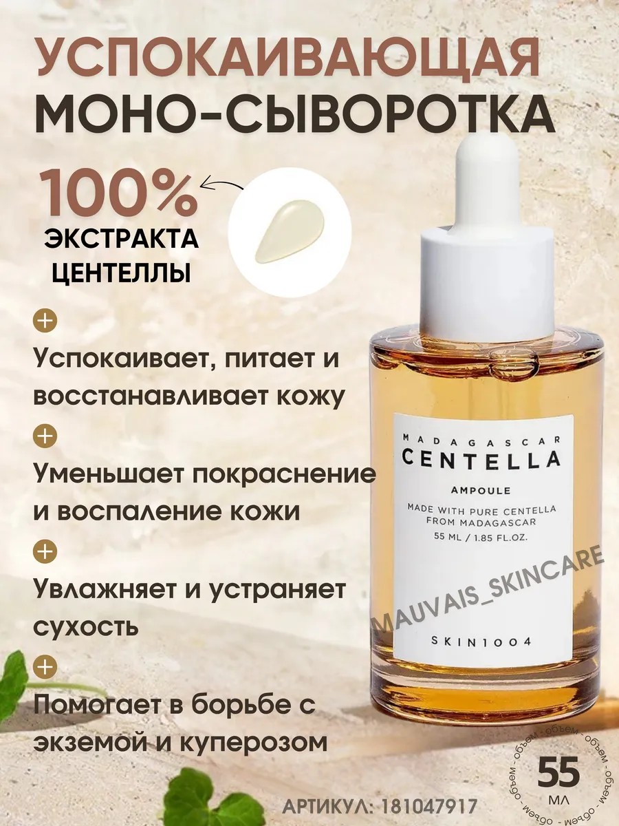 Centella сыворотка активно борется с воспалениями, устраняя покраснения и раздражения. Предназначена для улучшения текстуры и состояния кожи, а также уменьшения видимости признаков старения и несовершенств. Одним из главных преимуществ продукта является его способность стимулировать синтез коллагена и эластина, отвечающих за упругость и эластичность. Это позволяет сократить глубину морщин и улучшить тонус. Обладает легкой, но высокоэффективной формулой, которая глубоко проникает в ткани, увлажняя их и восстанавливая естественный баланс влаги. Быстро впитывается и не оставляет жирной пленки на лице. Centella skin 1004 центелла азиатская для лица подходит для чувствительной, а также для всех типов кожи и возрастов. Продукция скин 1004 проходит строгий контроль качества и тщательно отобранных компонентов. Благодаря использованию передовых технологий производства, сыворотка для лица с центеллой обеспечивает максимальный эффект при применении. Не откладывай свою красоту на потом! Skin 1004 centella cостав: 100% экстракт центеллы азиатской