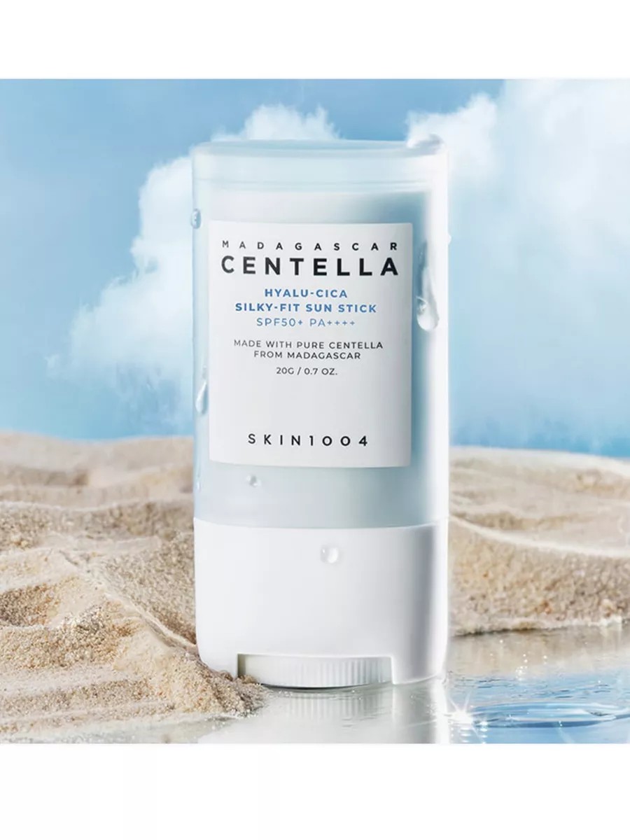 Солнцезащитный стик с шёлковым финишем SKIN1004 Hyalu-Cica Silky-Fit Sun Stick SPF50+ PA++++ обеспечивает максимальную защиту от ультрафиолета, предотвращает покраснение, солнечные ожоги, пигментацию и появление признаков фотостарения. Средство быстро и гигиенично наносится, отлично подходит для обновления защитного слоя и для использования в дороге. Имеет лёгкую текстуру, не провоцирует выделение жирного блеска. Подходит для лица и для тела. Содержит фотостабильные химические УФ-фильтры нового поколения, комплекс Hyalu-Cica из гиалуроновой кислоты и центеллы, а также экстракты алоэ, дерева ним, баклажана, зелёного чая, кофе и водорослей, масло жожоба