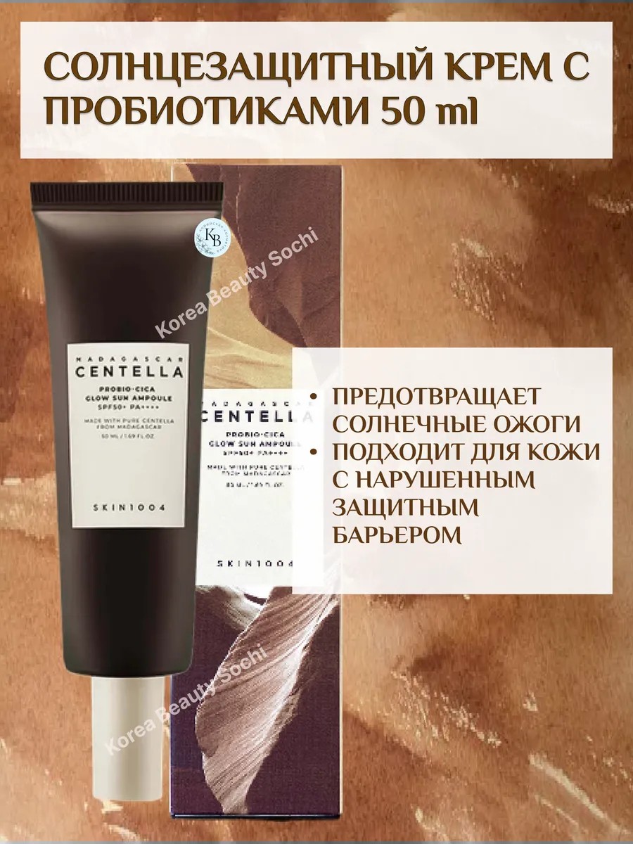 Солнцезащитный крем с пробиотиками 50 ml SKIN1004 Madagascar Centella Probio-Cica Glow Sun Ampoule SPF50+ PA++++ увлажняющее средство для защиты от солнца, которое не оставляет белых следов.