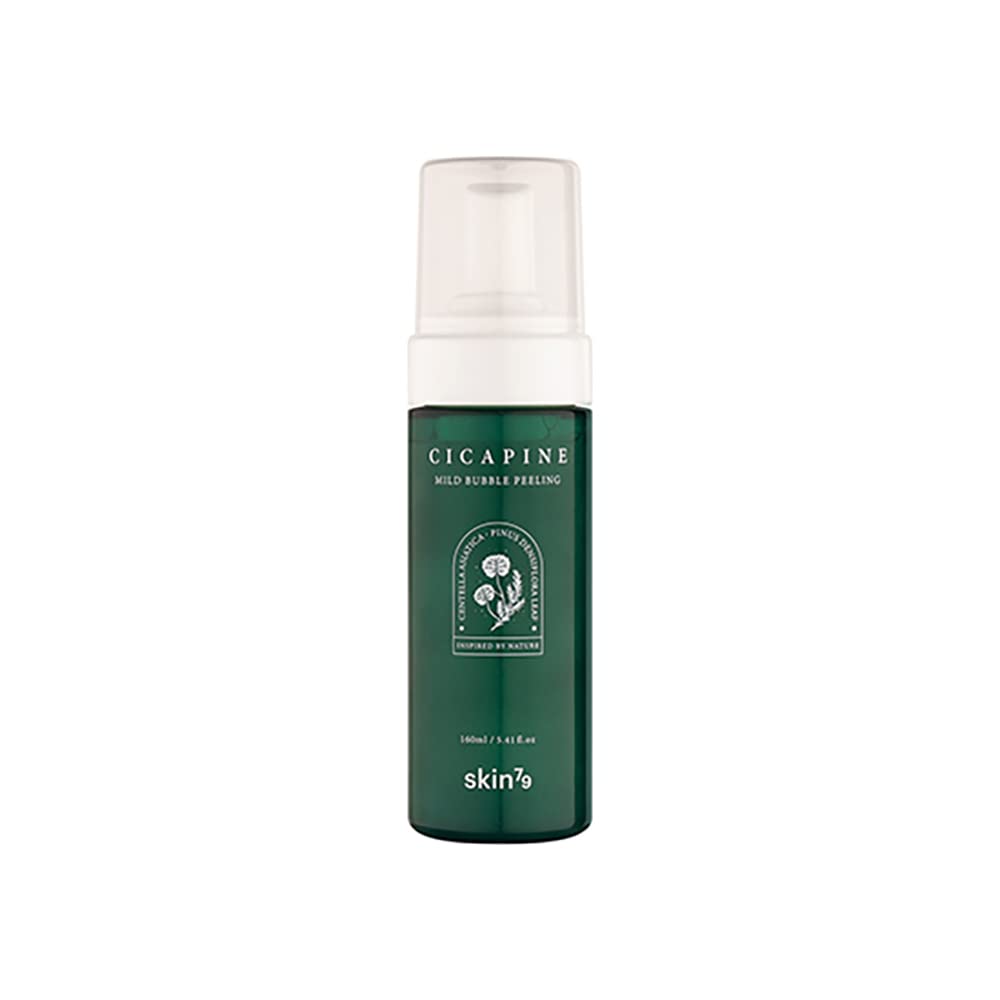 The strongly nourishing peeling foam Cica Pine Mild Bubble Peeling gently cleans the facial skin and leaves a clear, even and radiant complexion. Ingredients: Water, Polyglyceryl-4 Caprate, 1,2 Hexandiol, Butylenglycol, Propyleneglycol, Quaternium-60, carbomer, glycerin, perfume, sodium chloride, allantoin, ethylhexyl glycerin, Pinus Densiflora Leaf, Asian , Dextrin, Centella Asiatica Extract,Madecassoside, Madecassic Acid, Asiatic Acid Application: Shake well before use.Apply evenly to the entire face, saving the sensitive eye area.Gently massage to remove impurities, then rinse thoroughly with lukewarm water.For more strength: The active ingredients improve the strength and elasticity of the skin and leave a strengthened and silky smooth skin structure.Allantoin visibly reduces fine lines, so that the skin looks like the inside.CICA care: The extracts from Centella Asiatica effectively calm the irritated skin, relieve skin infections, redness and accelerate wound healing.After use, the facial skin looks even, fresh and radiant.Perfect cleaning: The dense cleaning foam helps to actively remove dead skin cells.The pores are minimized and the skin tone optimally balanced.Regular use prevents the blemishes and blackheads.Innovative formula: The innovative peeling formula with gommage gel inside foam gently and thoroughly frees the skin from all impurities and leaves a smooth, clear and healthy complexion. Der stark pflegende Peeling-Schaum Cica Pine Mild Bubble Peeling reinigt sanft die Gesichtshaut und hinterlässt ein klares, ebenmäßiges und strahlendes Hautbild. Inhaltsstoffe: Wasser, Polyglyceryl-4 Caprate, 1,2 Hexandiol, Butylenglycol, Propylenglycol, Quaternium-60, Carbomer, Glycerin, Parfüm, Natriumchlorid, Allantoin, Ethylhexylglycerin, Pinus Densiflora Leaf Extract, Asiaticoside, Pentylene Glycol, Dextrin, Centella Asiatica Extract, Madecassoside, Madecassic Acid, Asiatic AcidAnwendung: Vor Gebrauch gut schütteln. Gleichmäßig auf das gesamte Gesicht auftragen, dabei die sensible Augenpartie aussparen. Sanft einmassieren, um Unreinheiten zu entfernen, dann gründlich mit lauwarmem Wasser abspülen. Für mehr Festigkeit: Die aktiven Wirkstoffe verbessern die Festigkeit und Elastizität der Haut und hinterlassen eine gestärkte und seidig glatte Hautstruktur. Allantoin reduziert sichtbar feine Linien, sodass die Haut wie von innen ausgepolstert wirkt. CICA-Pflege: Die Extrakte aus Centella Asiatica beruhigen wirksam die irritierte Haut, lindern Hautentzündungen, Rötungen und beschleunigen die Wundheilung. Nach der Anwendung sieht die Gesichtshaut ebenmäßig, frisch und strahlend aus. Perfekte Reinigung: Der dichte Reinigungsschaum hilft, abgestorbene Hautzellen aktiv zu entfernen. Die Poren werden minimiert und den Hautton optimal ausgeglichen. Regelmäßige Anwendung beugt den Hautunreinheiten und Mitesser vor. Innovative Formel: Die innovative Peeling-Formel mit Gommage-Gel im Schauminneren befreit die Haut sanft und gründlich von allen Unreinheiten und hinterlässt ein glatteres, klares und gesundaussehendes Hautbild.SKIN79 Cica Pine Mild Bubble Peeling 160 ml, Peeling-Schaum mit Extrakt aus Centella Asiatica