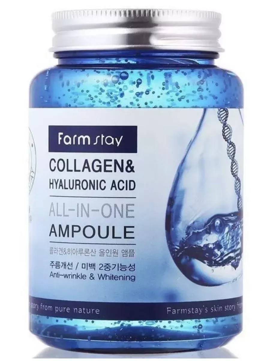 Multifunctional ampoule serum with hyaluronic acid and collagen FarmStay All In One Collagen and Hyaluronic Ampoule is a wonderful product for moisturizing and rejuvenating the skin!