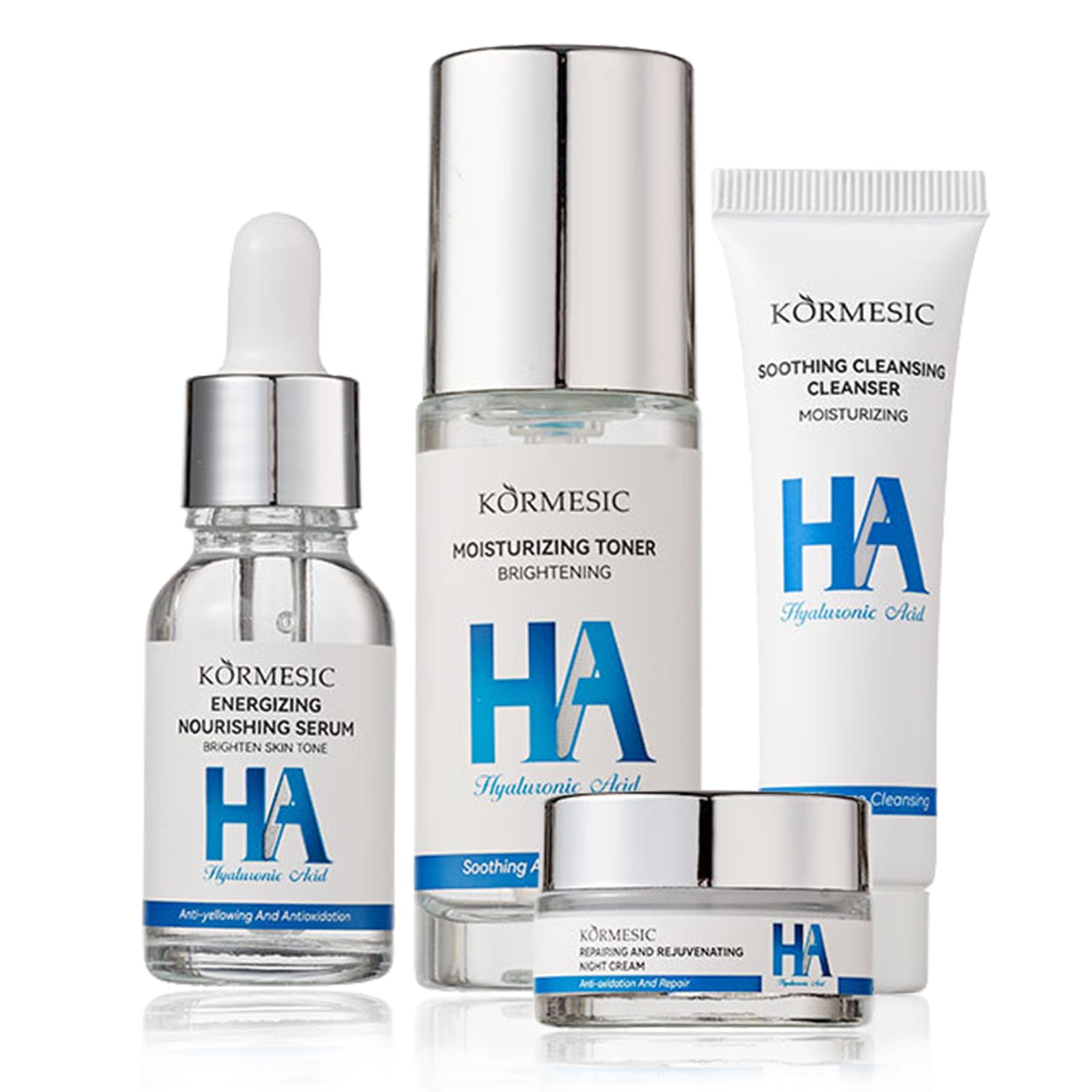 Hyaluronic Acid Skincare Gift Set Effects: Moisturizing / Anti-oxidation / Brightening / Lighten blemishes 1.Our gifts for teenage girls replenish skin's missing moisture, repair damage and isolate and protect harmful substances. Natural ingredients provide skin with lasting moisturizing effect. 2.The teenage girls gifts effectively maintain skin water and oil balance and improve dryness. 3.The gift set can repair skin: repair muscle cells, wake up sleeping skin, open skin absorption channel, enhance skin resistance. 4.This pamper set can replenish water and nourish skin, enhance skin texture and make skin smooth. Skin Care Set Contains: 1 * cleanser 20g 1 * face toner 30ml 1 * face cream 20g 1 * face serum 20ml Skincare Steps: Cleanser > Toner >Serum > Essence > Cream Step 1: Face Cleanser Clean the dirt Smooth and delicate skin Step 2: Face Toner Refreshing and hydrating Effectively fades blemishes Step 3: Face Serum Nourish brighten Fair and translucent skin Step 4: Face Cream Refreshing and hydrating Face Notice: 1.Before using this gift set, it is recommended that you try it on the skin behind your ears. If you feel uncomfortable, please stop using it. 2.Please keep the gift sets for women in a cool place and avoid high temperature and direct sunlight. 3.Please keep the gift set women out of the reach of children; not for children under three years old. SAFETY WARNING For external use only. Keep out of reach of children.?Skin Care Gift Set for Her?This 4-piece pamper gifts set package in luxurious gift box, idea gift for teenage girls, women, your family, lovers and friends in any occasions.Send them beauty, make them more confident! It’s a perfect choice for you to provide your face a deep cleaning and replenishing. ?Suitable for All Skin Types?Our facial set are cruelty-free,suitable for sensitive, dry, oily or combination skin, insist on using the face firming cream, the skin will continue to improve. This skin care sets & kits contain Hyaluronic Acid that lift and firm your skin and fight dryness, dullness, tightness, loss of firmness.Great for women and men for daily use. ?4-Steps for Daily Moisturizing Skin Care?Moisturizing cleanser of our self care gifts for women helps to clean face and pores. Toner hydrates skin in time, making skin cool and shrinking pores. Face serum hydrates skin deeply and replenish nutrients. Face cream hydrates skin and locks in water, promoting face care. ?Easily Absorbed?Designed for skin care for teenage girls and women, our skincare set product has the perfect consistency, and the essence is absorbed beautifully and quickly, without leaving greasy residue, rejuvenates skin, improves skin elasticity, restores even and translucent skin texture. ?Skincare Gift Set?The 4-piece skin care set for women contain our facial cleanser, toner, face serum, face cream. With the gentle effect of hyaluronic acid, the facial kit products can hydrate your face, sooth and moisturize your skin, helping to tackle the 5 early signs of dehydrated skin: dryness, dullness, dry dehydration lines, tightness, and roughness.