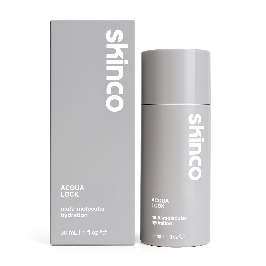 Skinco Aqua Lock Advanced Hyaluronic Acid Serum Multi-Molecular Hydration with Aloe Green Tea & Vitamin E | Plumps Moisturizes & Soothes Skin (1 fl oz)