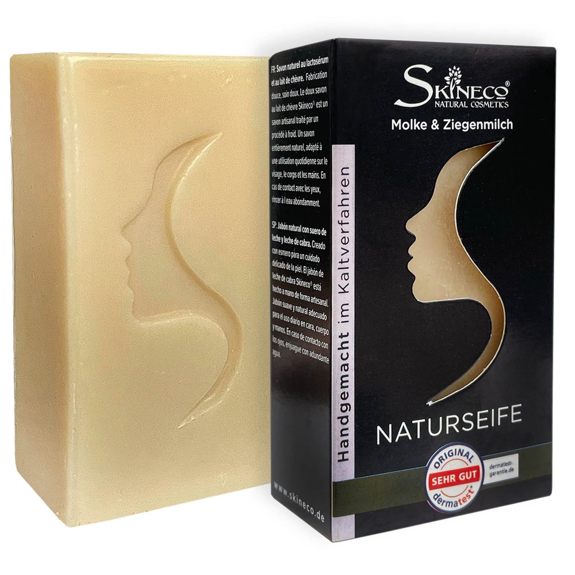 Skineco Savon naturel - Savon au lait de chèvre durable avec molleton - Savon pour peaux sèches sensibles - Cosmétique naturel fait à la main - Nettoyage du visage - Gel douche doux