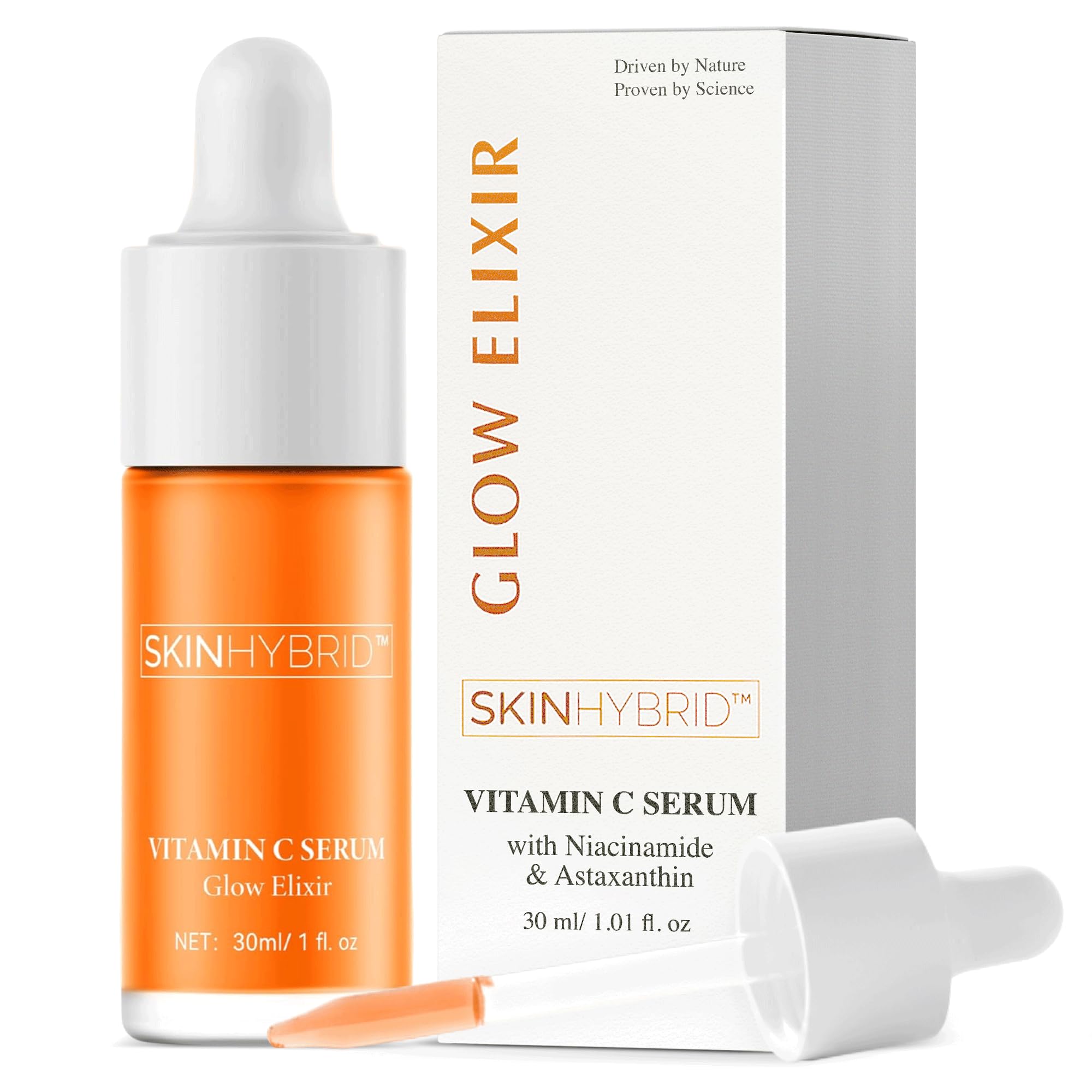 SkinHybrid Glow Elixir - Brightening Vitamin C Serum for Face with Niacinamide & Astaxanthin - Strengthens Skin Barrier, Evens Tone & Hydrates - Dark Spot Corrector, Lightweight (30ml / 1 fl oz)