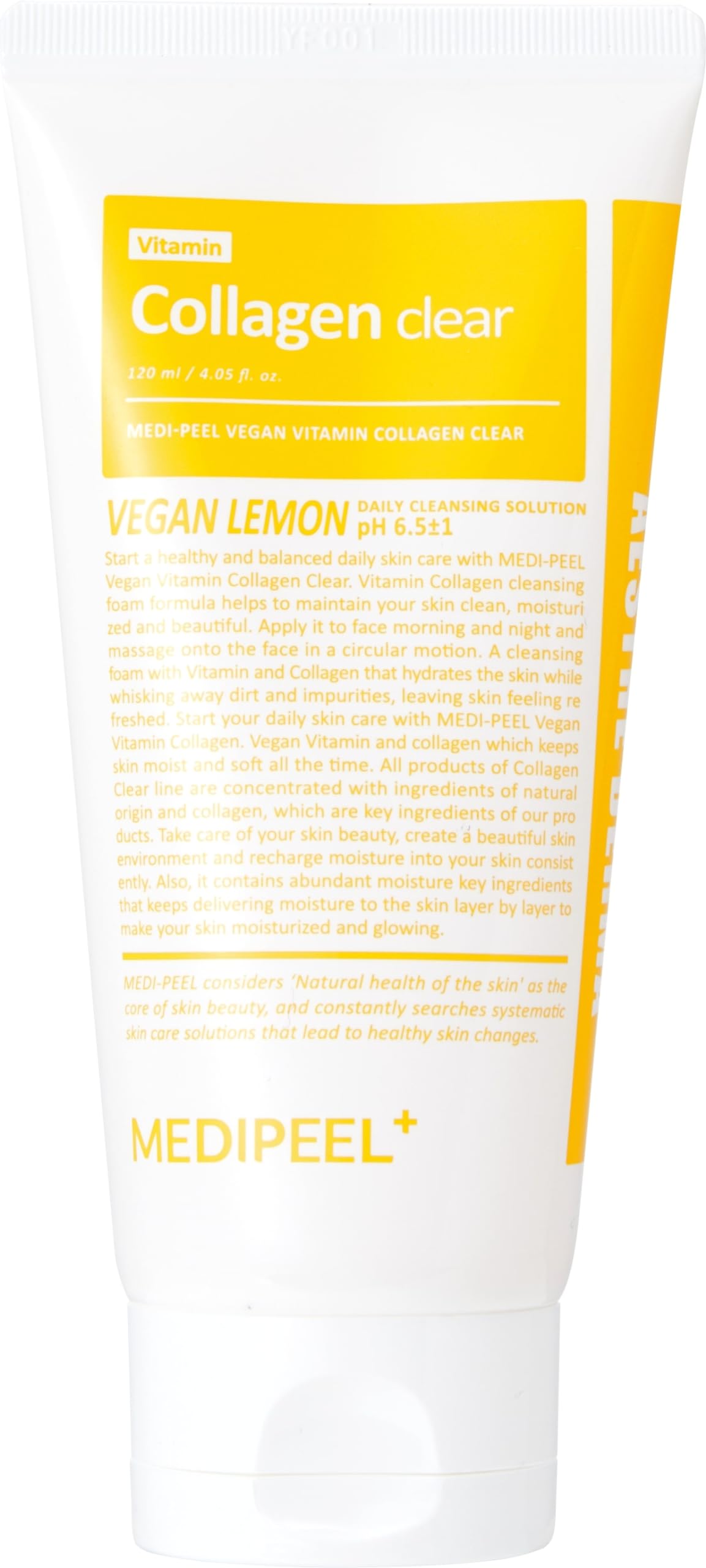 Discover the secret to radiant skin with the Medi Peel Vegan Vitamin Collagen Clear Brightening Gel Facial Foam – your indispensable ally on the way to a fresh and radiant skin tone. This revolutionary cleansing foam harnesses the power of Jeju-do lemon extract, which is processed with ultrasonic technology to retain the active ingredients that work wonders for your skin. You will notice a remarkable change after the first use. Say goodbye to impurities and clogged pores as this pH-neutral formula (6.5) works like magic in just 7 seconds to deliver a more radiant, vibrant complexion. The unique blend of 15 liposomal vitamins, including the B complex, vitamins A, C, E, F and H, gives your skin the much-needed vitality and elasticity. But that's not all: the addition of glutathione takes melanin management to the next level and promotes an even complexion that radiates natural beauty. And let's not forget the main ingredient: vegan collagen. This modern wonder tightens pores and improves elasticity, leaving your skin soft, supple and youthfully plumped. Medi Peel Vegan Vitamin Collagen Clear is not only effective, but also kind to your skin and our planet. It has passed skin irritation tests and proudly carries a vegan certificate as proof of its gentle, yet effective formula. Say goodbye to a host of skin problems, including excess sebum production, dullness, age spots and dehydration. An effective blend of arginine, vitamin C, collagen and other plant extracts such as lavender and rosemary work synergistically to not only cleanse, but also nourish and protect your skin. Use: After foaming the required amount of foam, gently massage the entire face and rinse thoroughly with warm water. INGREDIENTS purified water, vitamin tree water (24 ), glycerin, cocamidopropyl betaine, sodium lauresulfate, acrylate copolymer, alginin, polysorbate20, sodium chloride, 1,2-hexanediol, pyge-6 caprylic acid glycerides, pyge-120 methylglucose diol, caprylic glycose. lycol, butyl. ene glycol, citric acid, ethylhexylglycerin, ascovitic acid (100 ppm), glutathione (100 ppm), gluconolactone, niacinamide (33.5 ppm), lemon peel extract, banana extract, garnet extract, mulberry fruit extract, vig extract, calcium pantothenate. (20 parts per million), sodium starch succinate, maltodextrin, thyme extract, oregano flower leaf extract, rosemary extract, lavender extract, carylic acid triglycerides, hydrogenated decitin, sodium ascorbyl phosphate (8 parts per million), hyacinth ambulant extract, polyglyceryl. - 10 dimensions isostearate, clery extract, Corenflower Extract, Barley Extract, Matricaria flower Extract, Lemon Extract, Lavender Flower Extract, Pyridoxine H.C. L. (2 ppm), polyglyceryl-10 stearate, tocopheryl acetate (2 ppm), collagen (1.98 ppm), panthenol (1 ppm), menadione (1 ppm), collagen (0.1 ppm), silica, potassium sulfate, pyridoxine (0.01 ppm), polyacid (0.01 ppm), polyacid (0.01 ppm), polyacid (0.01 ppm). 1 ppm), cinema. Tin (0.01 ppm), tocopherol (0.01 ppm), cyanocobalamin (0.01 ppm), thiamine H.C.L. (0.0001 ppm), beta-carotene (0.0001 ppm), riboflavin (0.0001 ppm), linoleic acid (0.0001 ppm), yellow no. 4, yellow no. 5. Flavoring agent SAFETY WARNING Avoid contact with the eyes. For external use only See moreWith the Medi Peel Vegan Vitamin Collagen Clear Facial you get a radiant complexion. With Jeju lemon extract and 15 liposomal vitamins, it thoroughly cleanses, revitalizes and brightens the skin in seconds, while vegan collagen improves elasticity and gives the skin a youthful glow. Ideal for daily use and certified vegan, it is a natural choice for radiant, fresh skin.Medi-Peel Vegan Vitamine Collageen Clear Facial 300 ml Ontdek het geheim van een stralende huid met de Medi Peel Vegan Vitamine Collageen Clear Brightening Gel Facial Foam – je onmisbare bondgenoot op weg naar een frisse en stralende huidtint. Dit revolutionaire reinigingsschuim maakt gebruik van de kracht van het citroenextract uit Jeju-do, dat met ultrasone technologie wordt verwerkt om de werkzame stoffen te behouden die wonderen voor je huid verrichten. Al na het eerste gebruik zul je een opmerkelijke verandering merken. Zeg vaarwel tegen onzuiverheden en verstopte poriën, want deze pH-neutrale formule (6,5) werkt in slechts 7 seconden als bij toverslag en zorgt voor een stralendere, levendige teint. De unieke mix van 15 liposomale vitaminen, waaronder het B-complex, vitamine A, C, E, F en H, geeft je huid de broodnodige vitaliteit en spankracht. Maar dat is nog niet alles: de toevoeging van glutathion tilt het melaninebeheer naar een hoger niveau en bevordert een gelijkmatige teint die natuurlijke schoonheid uitstraalt. En laten we het hoofdbestanddeel niet vergeten: veganistisch collageen. Dit moderne wonder verstevigt de poriën en verbetert de elasticiteit, zodat je huid zacht, soepel en jeugdig voller wordt. Medi Peel Vegan Vitamine Collageen Clear is niet alleen effectief, maar ook vriendelijk voor je huid en onze planeet. Het heeft huidirritatietests doorstaan en heeft trots een veganistisch certificaat als bewijs van zijn zachte, maar effectieve formule. Zeg vaarwel tegen een groot aantal huidproblemen, waaronder overmatige talgproductie, dofheid, ouderdomsvlekken en uitdroging. Een effectieve mix van arginine, vitamine C, collageen en andere plantenextracten zoals lavendel en rozemarijn werkt synergetisch om je huid niet alleen te reinigen, maar ook te voeden en te beschermen. Gebruik: na het opschuimen van de benodigde hoeveelheid schuim het hele gezicht zachtjes masseren en grondig met warm water afspoelen. INGREDIËNTEN gezuiverd water, vitamine-boomwater (24 ), glycerine, cocamidopropyl betaïne, natriumlauresulfaat, acrylaat copolymeer, alginine, polysorbaat20, natriumchloride, 1,2-hexaanediol, pyge-6 caprylic acid glycerides, pyge-120 methylglucose diol, caprylic glycose. lycol, butyl. ene glycol, citrisch zuur, ethylhexylglycerine, ascovitisch zuur (100 ppm), glutathione (100 ppm), gluconolactone, niacinami
