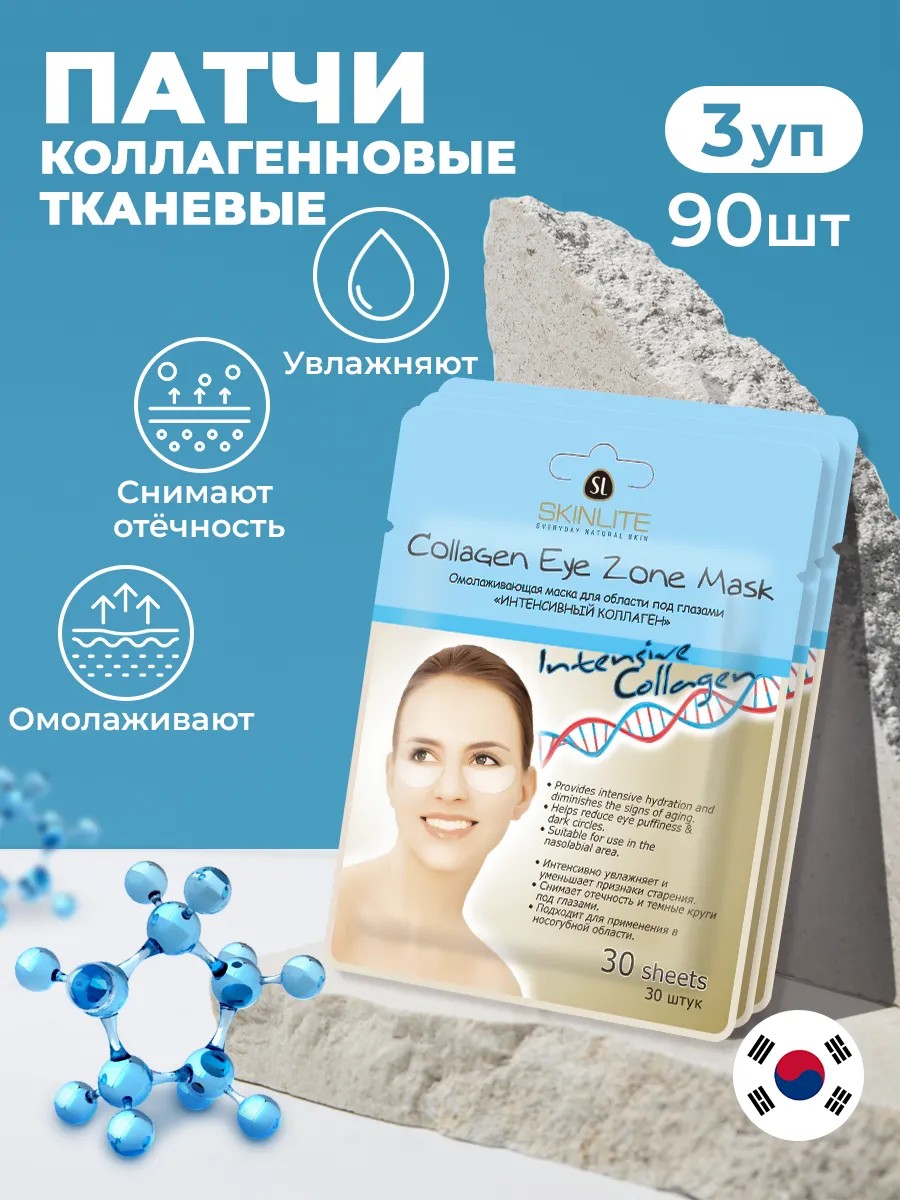Тканевые коллагеновые патчи для глаз «Интенсивный коллаген» от корейского бренда SKINLITE предназначены для интенсивного восстановления и ухода за кожей под глазами, способствуют улучшению водного баланса кожи, повышению эластичности кожи лица. В наборе 3 упаковки, всего 90 штук. Антивозрастной увлажняющий уход из Кореи мгновенно разглаживает морщины у глаз, дарит лифтинг эффект и бесконечное увлажнение. Витаминные патчи содержат в своем составе коллаген, витамин Е и экстракт зеленого чая – идеальное комбо для свежего и отдохнувшего взгляда! Уход эффективен для борьбы с отечностью, темными кругами, синяками и мешками под глазами. Увлажняющие тканевые патчи для глаз снимают следы усталости в зоне вокруг глаз, выравнивают тон и улучшают текстуру кожи, кожа под глазами становится более гладкой и нежной. Патчи дают ощутимый омолаживающий эффект, заметный уже после первого применения. Одноразовые патчи оказывают накопительное действие - рекомендуется использовать патчи утром и вечером. Также могут быть использованы для зоны носогубных складок. Для лучшего эффекта против отеков перед использованием положите патчи в холодильник на 15 минут. Подходят для женского и мужского ухода. Отличный подарок на 8 марта.