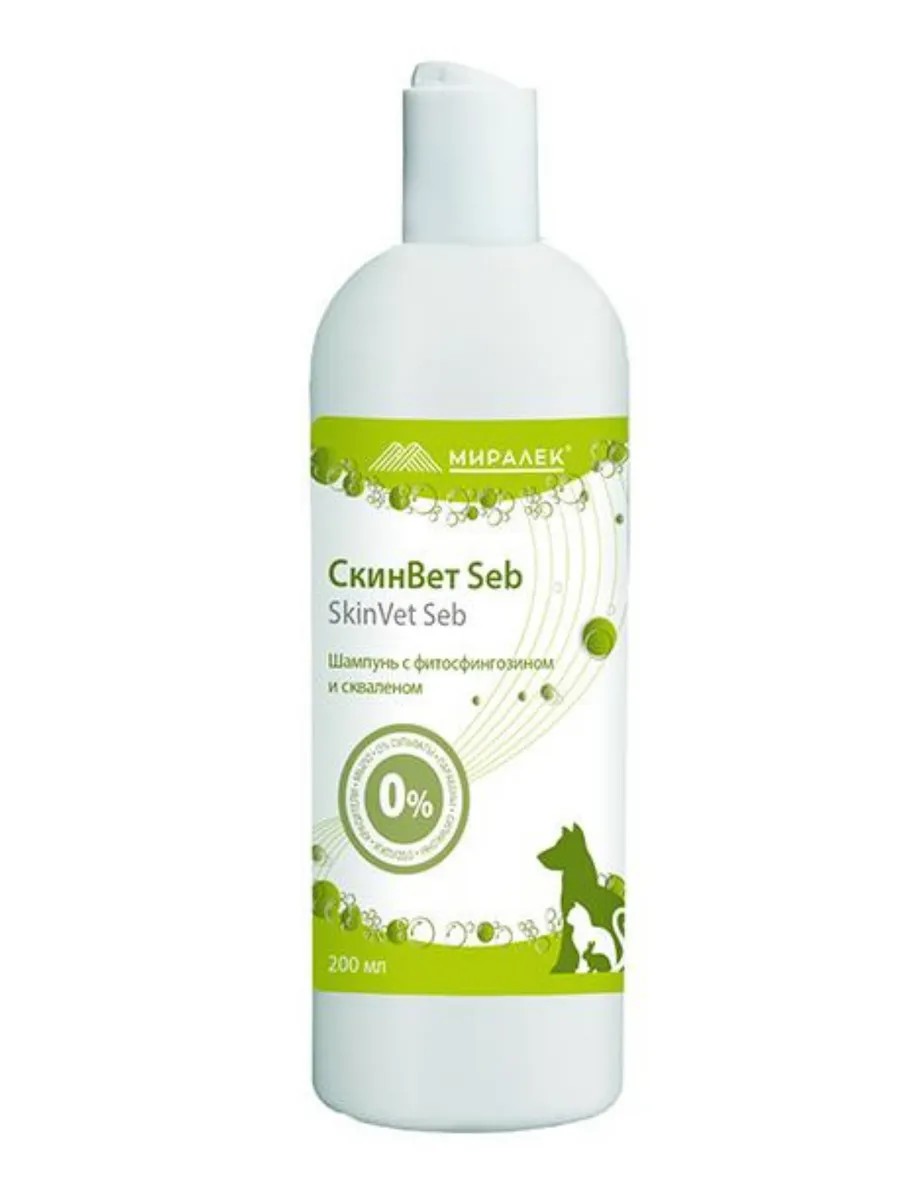 Шампунь СкинВет Seb — увлажняющий шампунь при себорейных состояниях кожи для собак и кошек (с фитосфингозином и скваленом). СкинВет – гипоаллергенные увлажняющие шампуни, которые смягчают кожу и шерсть и удерживают в коже влагу, повышая ее эластичность посредством восстановления липидного барьера в коже. Устраняют повреждения кожи и ломкость волоса, убирая зуд и воспаление. Обладают антибактериальными свойствами. Шампуни пригодны для частого применения. Безопасны для окружающей среды.
