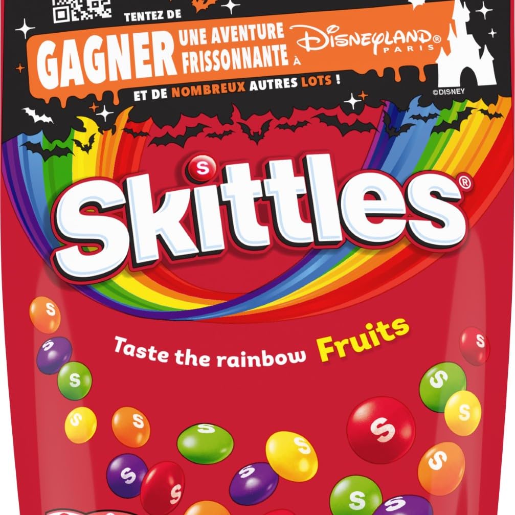 Contenu : SKITTLES Bonbons Goûts Fruités, Sachet individuel, 152g. Savoureux, sa formule est maintenant délicieusement végane, pour que tout le monde puisse profiter de nos Skittles. Ajoutez une touche de couleur arc-en-ciel à n'importe quel assortiment de bonbons. Les Skittles sont les friandises idéales pour les fêtes, qu'il s'agisse d'Halloween ou de l'anniversaire de votre meilleur ami. Ces petits bonbons arc-en-ciel peuvent aussi bien égayer les placards de la cuisine que les tiroirs du bureau et s'ajouter à votre boîte de bonbons. Des bonbons moelleux à la coque croustillante dans un arc-en-ciel de saveurs fruitées, goût cassis, citron, citron vert, orange et fraise. 1 sachet de Skittles Fruits de 152g. Savoureux, tout le monde peut profiter de nos bonbons Skittles qui conviennent aux Végétariens. Des bonbons pour Halloween, pour Noël, pour Pâques.. Des bonbons pour toutes les occasions spéciales avec Skittles. Emmenez le mag de bonbons partout où vous allez. À savourer pendant les trajets quotidiens ou comme en-cas pendant une pause. Des bonbons moelleux à la coque croustillante dans un arc-en-ciel de saveurs fruitées, dont un mélange de cassis, citron, citron vert, orange et fraise.