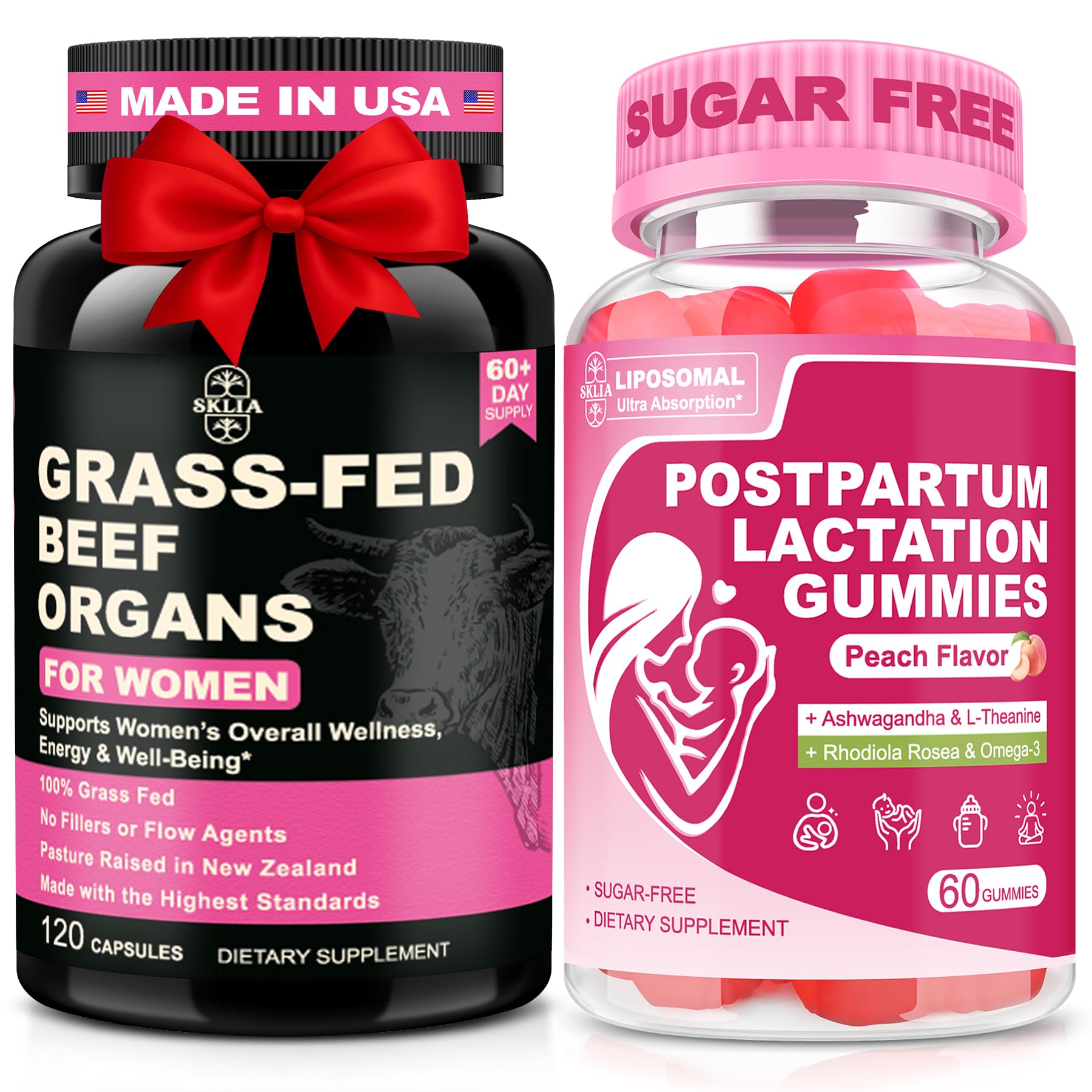 SKLIA Liposomal Lactation Supplement Gummies for Nursing Moms Beef Organ Supplement for Women Bundle | Lactation Support Gummies & Grass Fed Beef Liver Kidney Uterus Ovary Capsules