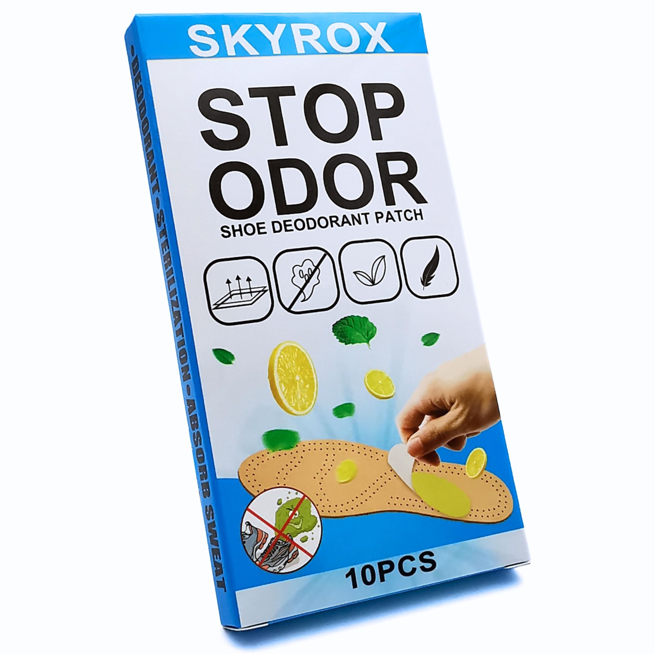 SkyroX Daily Use Shoe Odor/Odour Eliminator & Deodorizer Patches - 10-Pack - Refreshing Lemon and Mint Scent - Portable and Versatile - Ideal for Sports Travel and Gym Use