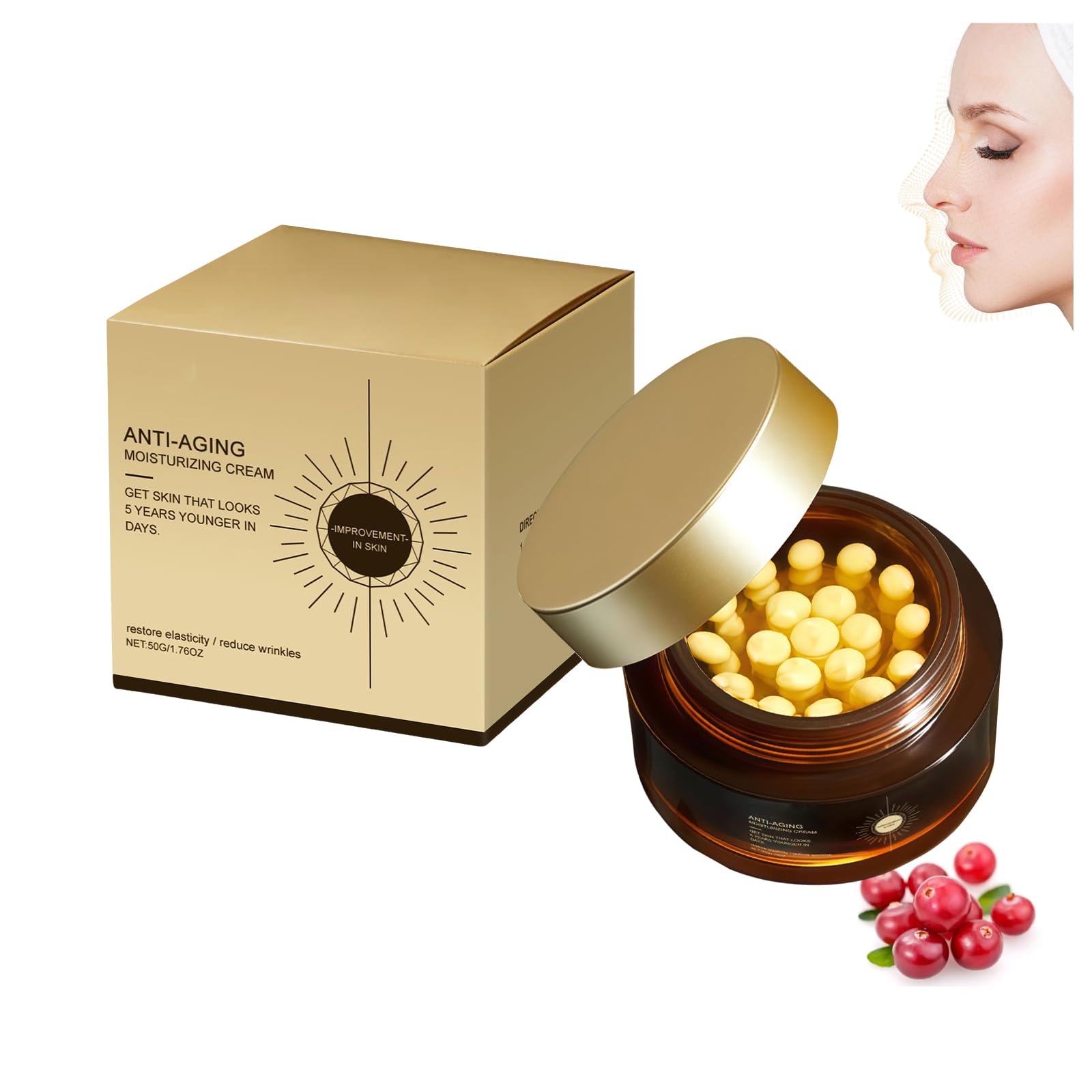 Retinol and Collagen Cream: Deeply hydrates, firms, and reduces fine lines DIRECTIONS FOR USE: 1. Gently cleanse and pat dry. 2. Apply a small amount of product evenly. 3. Massage until fully absorbed. Specifications: Name: Retinol Moisturizing Cream Capsules Net Contents: 50g Shelf Life: 3 years Package Contents: 1 2 3 6 Retinol Moisturizing Cream Capsules Note: 1. Please allow for a 1-5g 1-2cm difference due to manual measurement. 2. Due to differences in display and lighting, the actual color of the item may vary slightly from the image. Thank you for your understanding. SAFETY WARNING Store in a cool, dry place away from light. Keep out of reach of children.This cream is an ideal daily moisturizer that revitalizes the appearance of your skin. It balances the skin's natural moisture for smoother, more supple skin. Its lightweight texture absorbs quickly, hydrating and smoothing the skin. It improves the appearance of supple skin. Suitable for all skin types, this fast-absorbing formula, formulated with retinol and collagen, nourishes the skin. It is designed for use morning and night. Enjoy a firmer complexion with this cream that improves skin texture and combats sagging. It provides long-lasting hydration without feeling heavy. The Retinol Capsules Moisturizing Cream deeply hydrates and improves skin elasticity. Formulated with collagen, it helps reduce the appearance of fine lines and dryness.Crème hydratante aux capsules de rétinol, hydrate en profondeur, raffermit, au collagène, améliore l'élasticité de la peau,atténue la sécheresse et le relâchement cutané, réduit les ridules (1PCS)DESCRIPTION DU PRODUIT DESCRIPTION DU PRODUIT Crème au Rétinol et au Collagène : Hydrate en profondeur, raffermit et atténue les ridules CONSEILS D'UTILISATION : 1. Nettoyer délicatement et sécher en tapotant. 2. Appliquer une noisette de produit uniformément. 3. Masser jusqu'à absorption complète. Spécifications : Nom : Crème hydratante en capsules de rétinol Contenu net : 50 g Durée de conservation : 3 ans Contenu de l'emballage : 1 2 3 6 capsules de crème hydratante en capsules de rétinol Remarque : 1. Les mesures étant prises à la main, une différence de 1 à 5 g 1 à 2 cm peut être possible. 2. En raison des différences d'affichage et d'éclairage, la couleur réelle de l'article peut varier de celle de la photo. Merci de votre compréhension. AVERTISSEMENT DE SÉCURITÉ À conserver dans un endroit frais et sec, à l'abri de la lumière. Tenir hors de portée des enfants.Cette crème est un hydratant quotidien idéal qui revitalise l'apparence de votre peau. Elle équilibre l'hydratation naturelle de la peau pour une peau plus lisse et plus souple. Sa texture légère pénètre rapidement, hydrate et lisse la peau. Elle améliore l'apparence des peaux assouplies. Adaptée à tous les types de peau, cette formule à absorption rapide, formulée à base de rétinol et de collagène, nourrit la peau. Elle est conçue pour être utilisée matin et soir. Appréciez un teint plus ferme grâce à cette crème qui améliore la texture de la peau et lutte contre le relâchement cutané. Elle procure une hydratation longue durée sans sensation de lourdeur. La Crème Hydratante Capsules de Rétinol hydrate en profondeur et améliore l'élasticité de la peau. Formulée à base de collagène, elle contribue à réduire l'apparence des ridules et de la sécheresse.