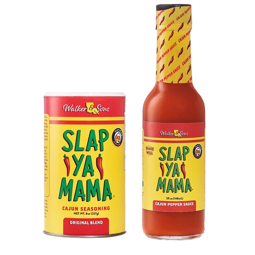 Slap Ya Mama has been producing high quality Cajun spices and recipes from Ville Platen, Louisiana for decades. A family business, Jack and Joseph Walker carry on the traditional cooking of their grandmother, Wilda Marie and her father Anthony. With lower sodium than most national brands and multiple blends to choose from, you're sure to find something you'll love. Check out Slap Ya Mama's spices, hot sauces, meal kits and gift sets for your own Lousiana.Slap Ya Mama Louisiana Style Variety Pack, Cajun Original Blend kruidenmix 237 ml blik en cajun-pepersaus 142 ml fles Slap Ya Mama produceert al tientallen jaren hoogwaardige cajun-specerijen en recepten van Ville plaat, Louisiana. Een familiebedrijf, Jack en Joseph Walker voeren de traditionele keuken van hun grootmoeder, Wilda Marie en haar vader Anthony voort. Met een lager natriumgehalte dan de meeste nationale merken en meerdere mengsels om uit te kiezen, vind je zeker iets waar je van kunt houden. Bekijk Slap Ya Mama's kruiden, warme sauzen, maaltijdsets en cadeausets voor je eigen Lousiana.