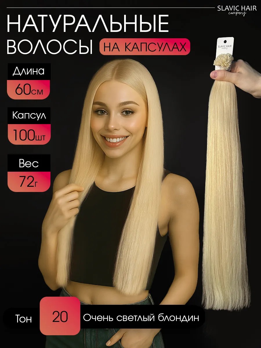 SLAVIC HAIR Сompany Натуральные волосы для наращивания на капсулах 60 см 100 шт