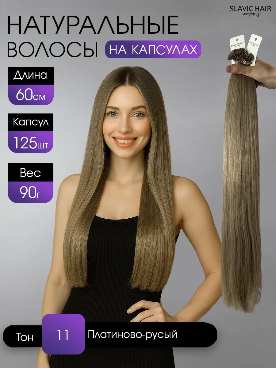 SLAVIC HAIR Сompany Натуральные волосы для наращивания на капсулах 60 см 125 шт