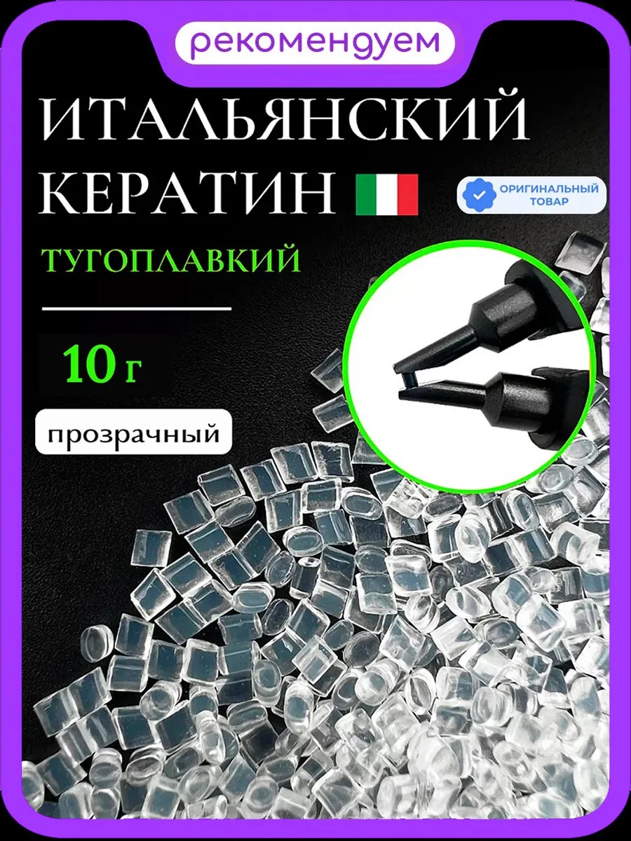Итальянский тугоплавкий кератин Премиум качества для горячего наращивания и капсуляции Натуральных и Биопротеиновых волос. Профессиональный прозрачный термокератин - необходим мастерам парикмахерам при работе как с натуральными донорскими срезами, так и синтетическим волокном.