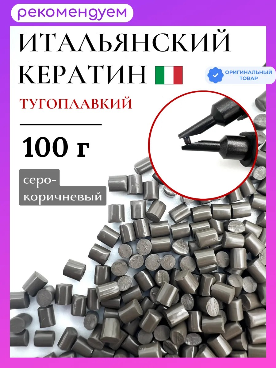 | Комплектация | Тугоплавкий итальянский матовый серо коричневый кератин 100 г |