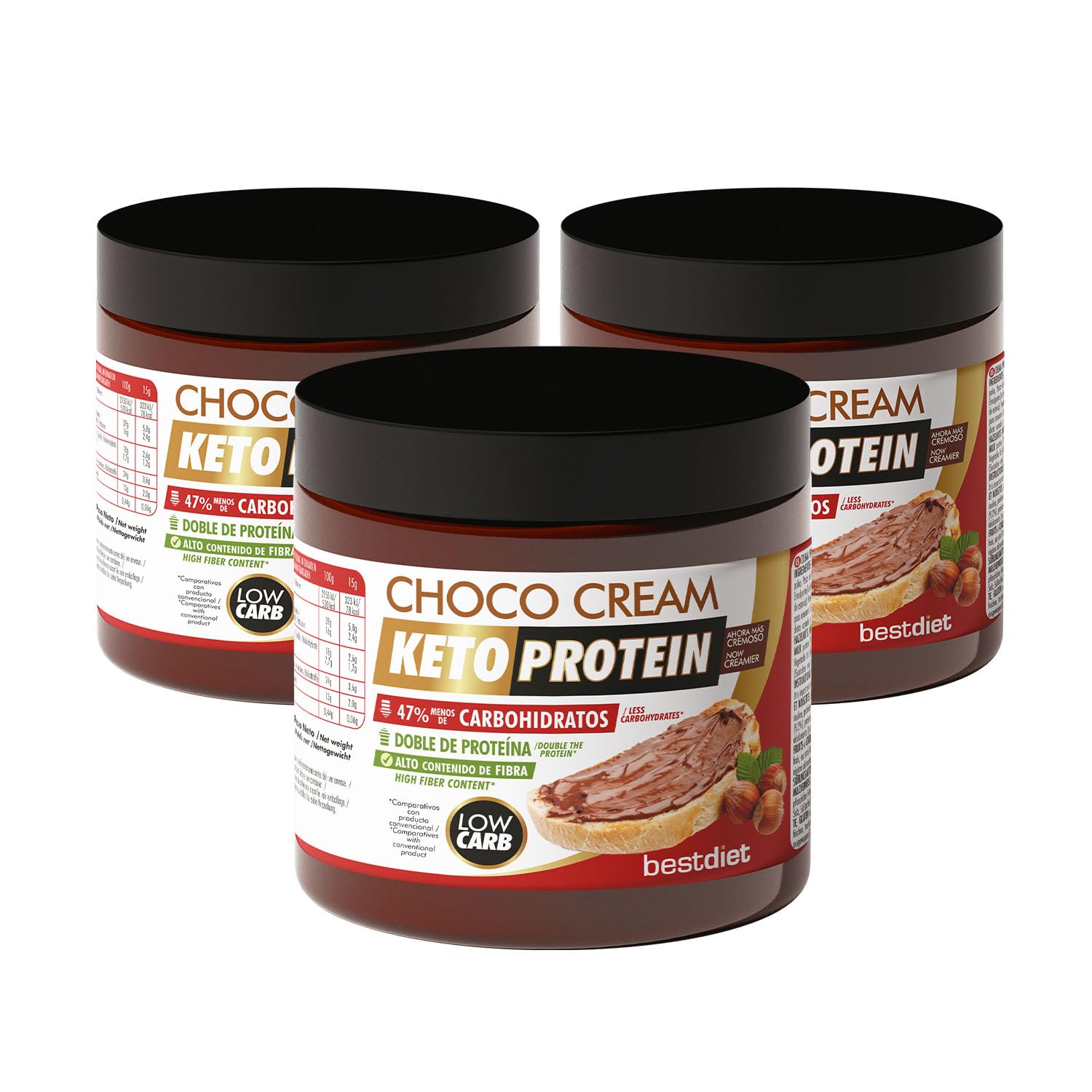 SLEEK BEST DIET Keto Protein Bestdiet Vegan chocolate spread with hazelnuts palm oil low in fat and carbohydrates no sweeteners glutenfree pack of 3 jars of 200 g