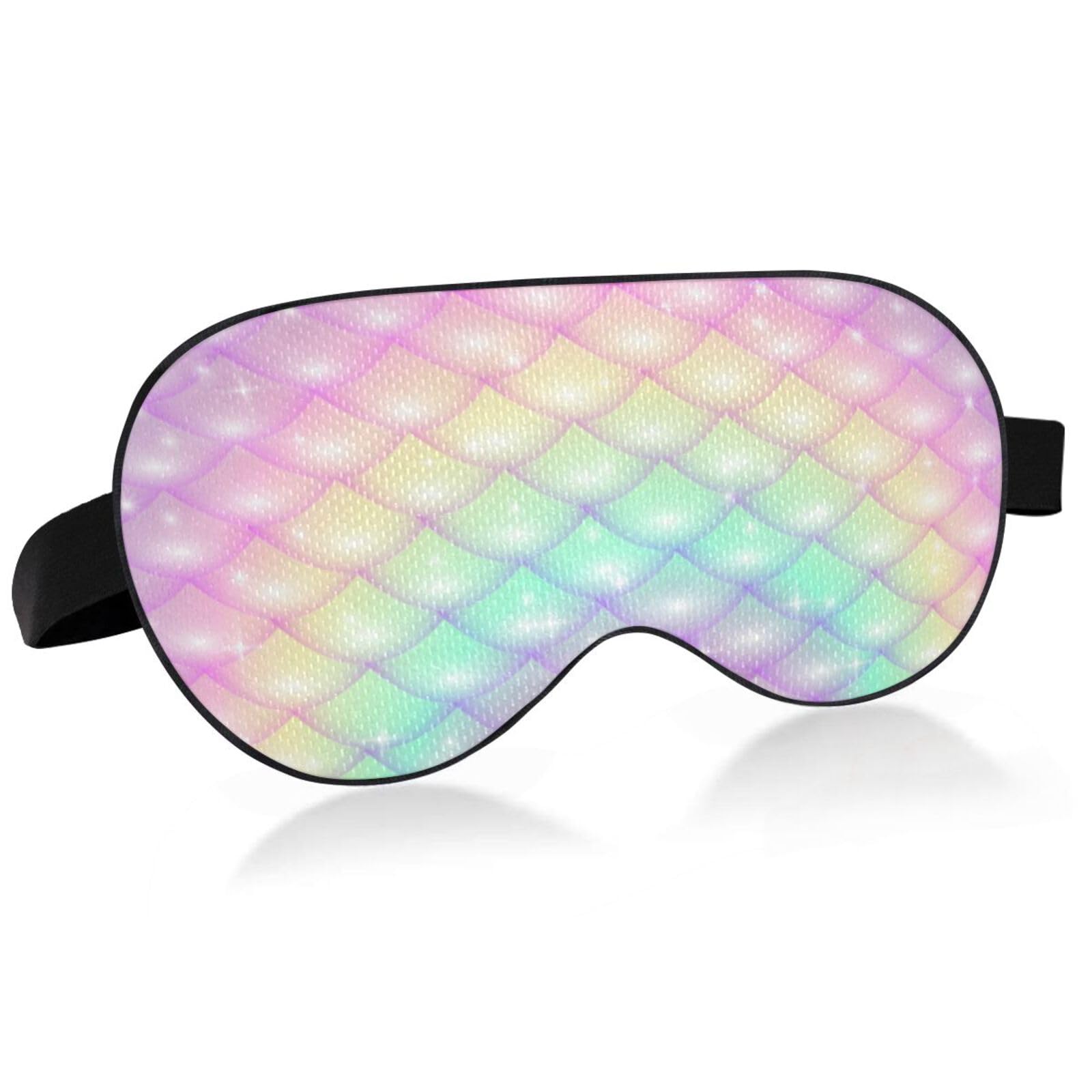 Sleep Mask Light Blocking Rainbow Mermaid Scales Eye Mask for Sleeping with Adjustable Strap Fish Scales Soft Lightweight Eye Cover Blindfold for Men Women Work Travel Naps