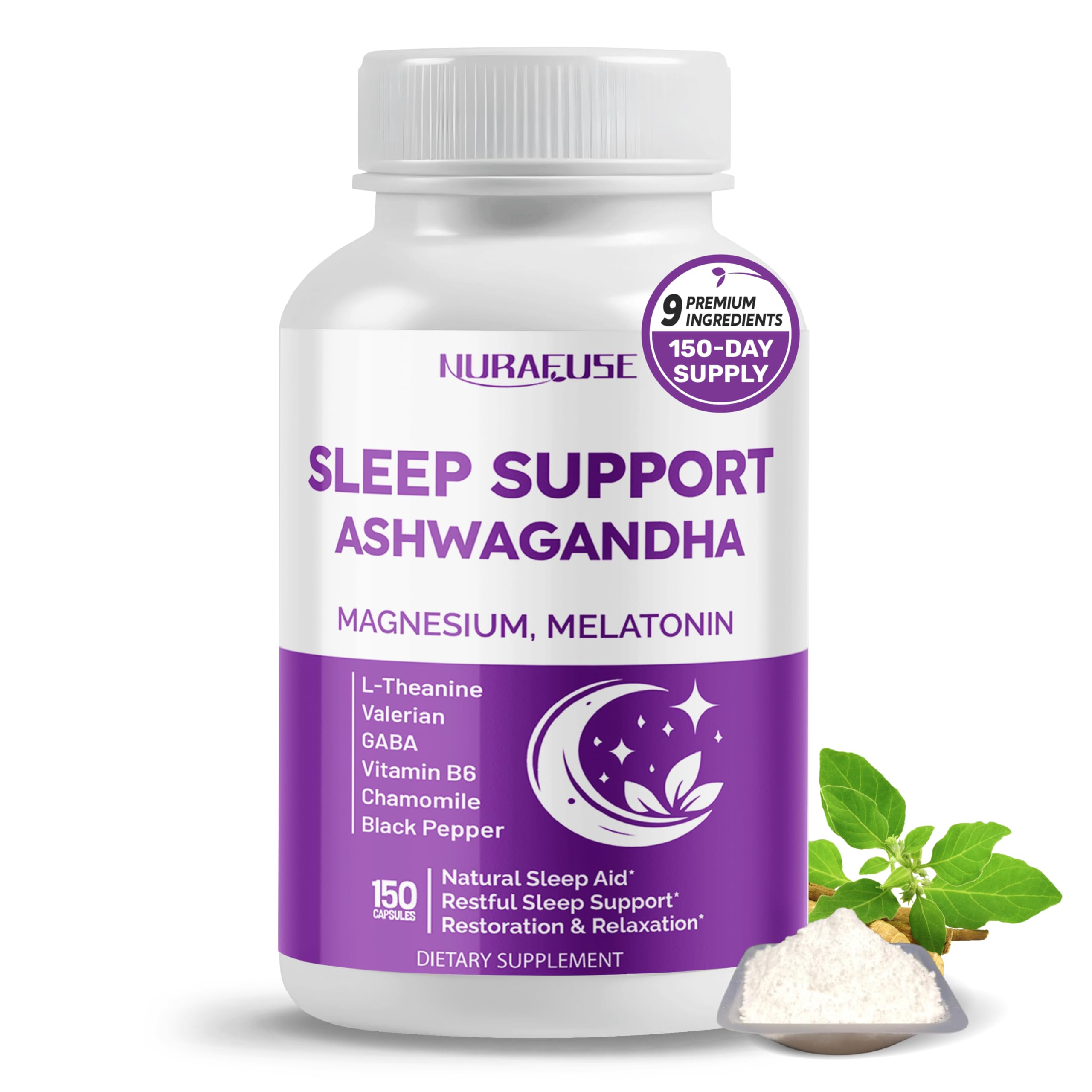 Sleep Support with Ashwagandha Magnesium Melatonin L-Theanine Valerian Chamomile Natural Sleep Aid* for Restful Sleep* Relaxation* & Restoration* Made in The USA 150 count (pack of 1)