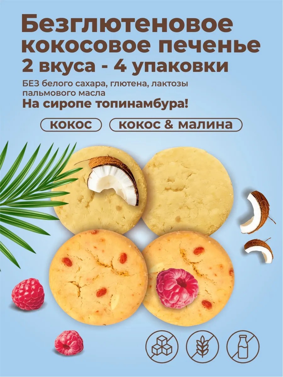 | Вид печенья | безглютеновое; кокосовое; без сахара |