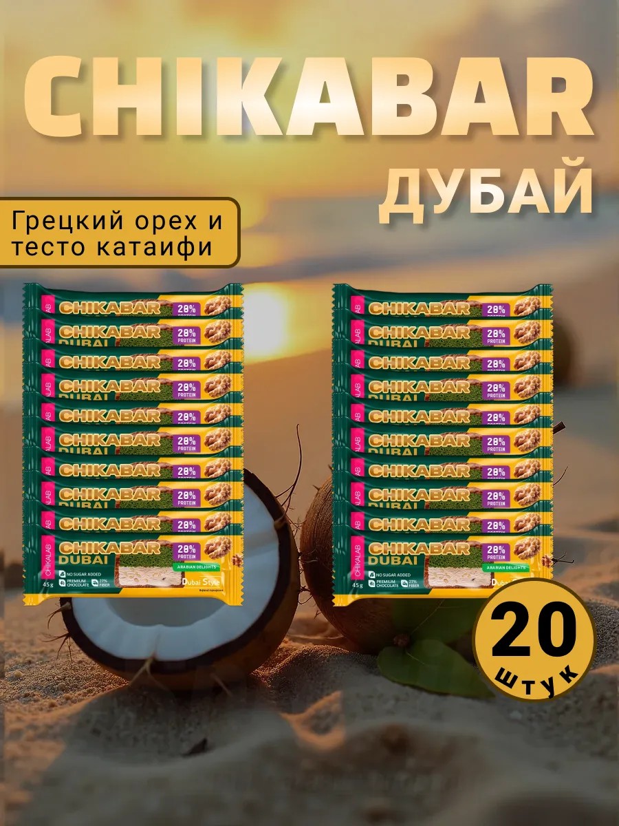 Откройте для себя восхитительный вкус Востока с ПП батончиком ChikaBar со вкусом дубайского шоколада! Этот протеиновый батончик Chika bar – идеальное решение для тех, кто ценит здоровое питание и не готов отказываться от любимых сладостей. Наш чикабар – это ПП десерт без компромиссов: никакого сахара, только натуральные ингредиенты и изысканный шоколадный вкус.