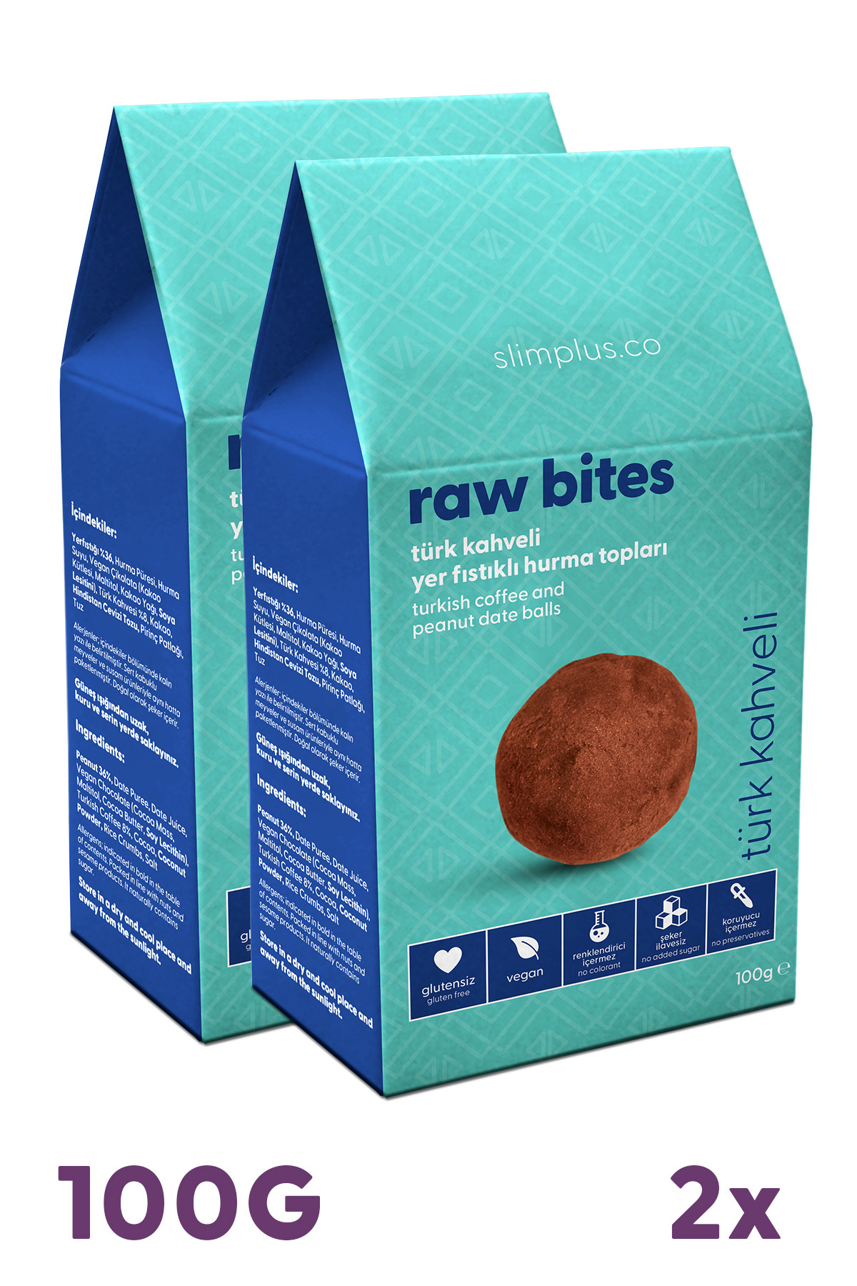 slimplus 2 Packs Gluten Free Vegan Peanut Date Balls with Turkish Coffee Raw Bites 100G