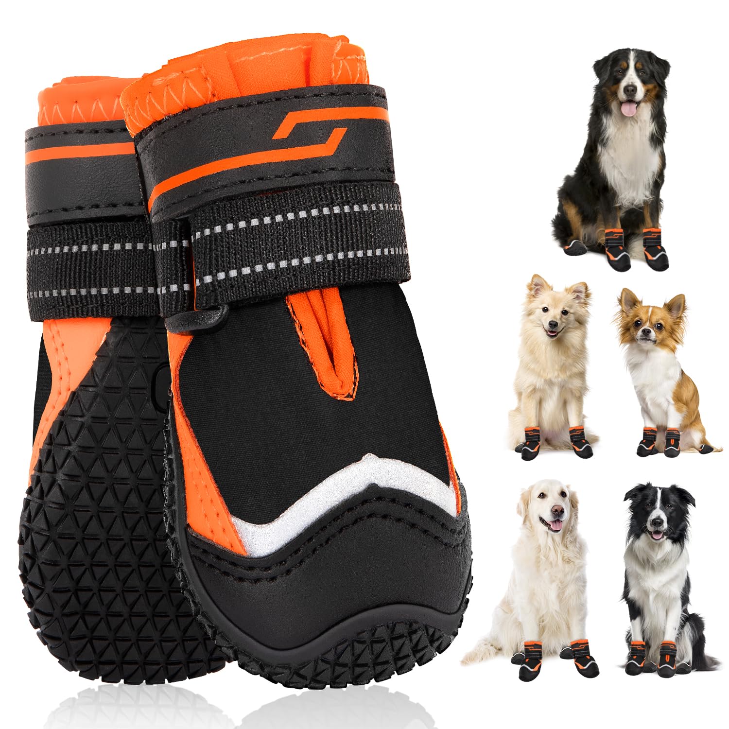 ?Double adjustable reinforcement? These dog shoes outdoor have two nylon straps and adjustable Velcro tapes, which can be set depending on the actual situation.Our sizes are based on the inner diameter of the shoe, so make sure to measure your dog's paw width carefully.Consult the size table to find the perfect fit for your dog and to ensure the greatest possible comfort.?Simply put on and take off? This paw protection dog injury shoes have wide slit openings that easily put on and take off the dog.Dog shoes Pfot protection waterproof are firmly attached by two straps with Velcro fasteners, which are long and adjustable.When wearing, the dog's paws can be firmly placed in the dog shoes to prevent slipping.In addition, the paw protection dog is so light that the dog can move freely.?Robust & non -slip dog shoes? The soft material of the dog shoes winter ensures strong stability and grip for your dogs.Shoes dog paws can effectively protect the dog's safety so that dogs do not slip to injure it in the rain.The paw protection for dogs help dogs to get up more easily on wet floors and move freely.?Safety for the night? The tens parts of dog shoes are waterproof of space leather material that is durable and waterproof.The reflective Velcro fasteners on the dog shoes improve visibility in the dark, so that pedestrians become aware of their dog at night, it is easier to find and offer additional protection during walks, night courses and hikes.?High quality waterproof material? Our dog shoes Pfot protection consist of waterproof fabric with waterproof coating and guarantee that the paws of your pet on rainy or snowy days will remain dry and clean.Dog shoes can also protect injured paws and weak paws from snow and ice in winter.(Please note: these are not rain boots and should not be dipped in water over a longer period of time).?Doppelte einstellbare Verstärkung?Diese Hunde Schuhe Outdoor haben zwei Nylonriemen und verstellbare Klettbändern, die je nach tatsächlicher Situation eingestellt werden können. Unsere Größen richten sich nach dem Innendurchmesser des Schuhs, also achte darauf, die Pfotenbreite deines Hundes sorgfältig zu messen. Konsultieren Sie die Größentabelle, um die perfekte Passform für Ihren Hund zu finden und den größtmöglichen Komfort zu gewährleisten. ?Einfach an- und auszuziehen?Dieser Pfotenschutz Hund Verletzung Schuhe haben breite Schlitzöffnungen, die den Hund sehr einfach an- und ausziehen. Hundeschuhe Pfotenschutz wasserdicht werden durch zwei Riemen mit Klettverschluss fest befestigt, die lang und verstellbar sind. Beim Tragen können die Pfoten des Hundes fest in die Hundeschuhe platziert werden, um ein Verrutschen zu verhindern. Darüber hinaus sind die Pfotenschutz hund so leicht, dass sich der Hund frei bewegen kann. ?Robuste & Rutschfeste Hundeschuhe?Das weiche Material der Hundeschuhe Winter sorgt für starke Stabilität und Grip für Ihre Hunde. Schuhe Hundepfoten kann die Sicherheit des Hundes effektiv schützen, so dass Hunde nicht verrutschen, um im Regen zu verletzen. Der Pfotenschutz für Hunde helfen Hunden, auf nassen Böden leichter aufzustehen und sich frei zu bewegen. ?Sicherheit für die Nacht?Die Zehenteile von Hundeschuhe wasserdicht bestehen aus Weltraumledermaterial, das langlebig und wasserdicht ist. Die reflektierenden Klettverschlüsse an den Hundeschuhen verbessern die Sichtbarkeit im Dunkeln, so dass Fußgänger nachts auf Ihren Hund aufmerksam werden, er leichter zu finden ist und bei Spaziergängen, Nachtläufen und Wanderungen im Freien zusätzlichen Schutz bietet. ?Hochwertiges wasserdichtes Material?Unsere Hundeschuhe Pfotenschutz bestehen aus wasserdichtem Gewebe mit wasserdichter Beschichtung und garantieren, dass die Pfoten Ihres Haustieres an regnerischen oder verschneiten Tagen trocken und sauber bleiben. Hunde Schuhe kann auch verletzte Pfoten und schwache Pfoten im Winter vor Schnee und Eis schützen. (Bitte beachten Sie: Dies sind keine Regenstiefel und sollten nicht über einen längeren Zeitraum in Wasser getaucht werden).SlowTon Hundeschuhe Pfotenschutz, 2 Stück wasserdichte Hunde Schuhe Outdoor mit rutschfester Sohle, reflektierendem Klettverschluss Hundestiefel für kleine mittlere große Hunde Winter(S-Orange, Size2) Size 2: Breite 4.5 cm J.Schwarz-Orange-Wasserdicht (2 Stück)