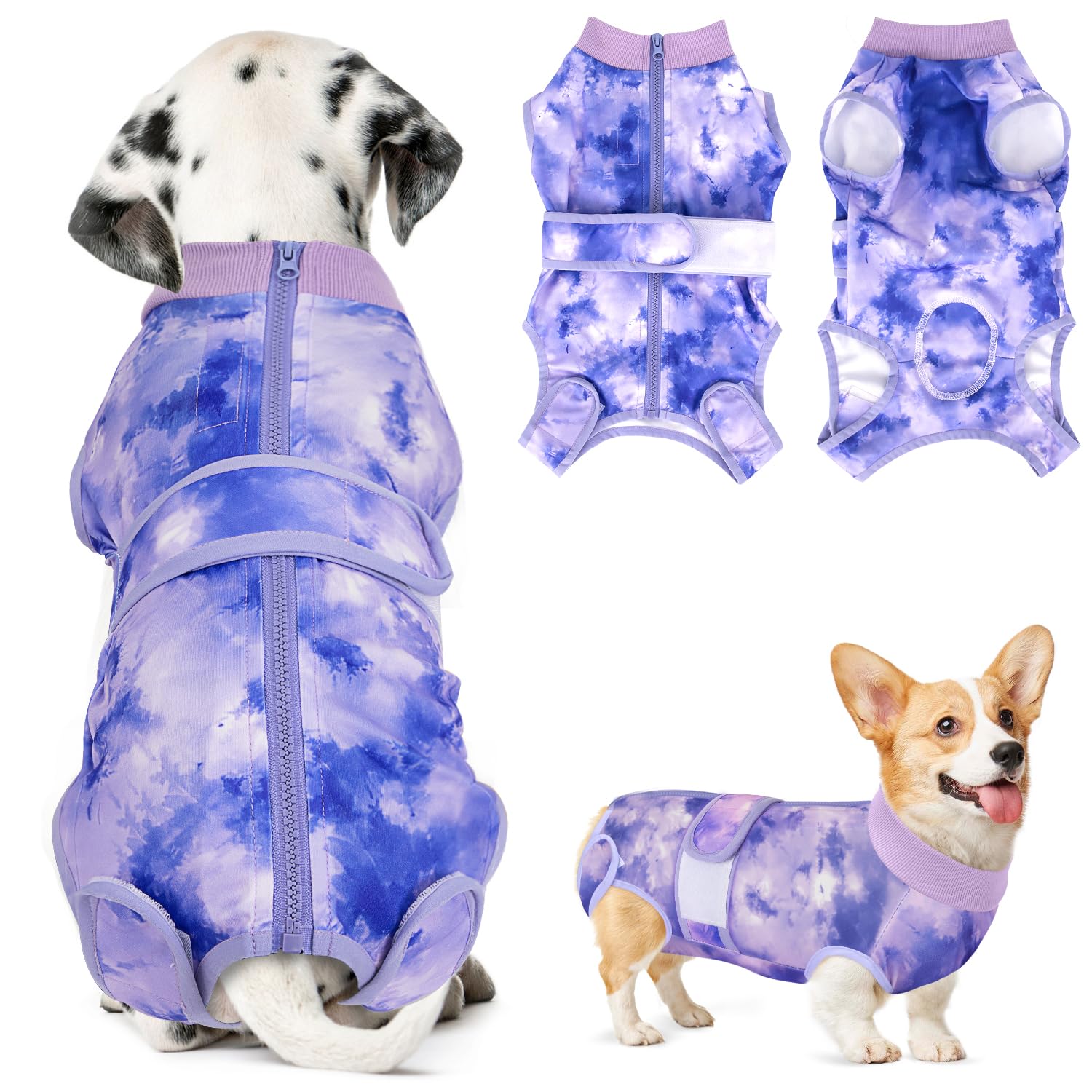 VersatileThis is not only a surgical recreational dress, but also a daily clothing for your sweet pet.Suitable for small, medium and large dogs and cats.Dog breeds such as French bulldogs, teddys, cocker Spaniels, boxers, schnauzer, boobs, Labradors etc. Alternative to e-collarCompared to conical and e-neck bands, pets that can carry rehabilitation coats for dog operations, the diet, sleeping and sleeping and sleepingSolve movement problems after the operation so that your dog is freer and more relaxed.Calms irritated dogsRehabilitation clothing is made of soft and convenient 95 cotton and 5 elastane, breathable and stretchy, machine washable, to reduce fear and stress for your dog during the recovery phase so that your dog to recover healthier and happierYou that it does not restrict your pet's activities.Prevent the licking and scratching of woundsHealing suits for dogs prevent your furry friend from scratching and licking your surgical wounds, which can reduce the risk of infection and other injuries.It is suitable for postoperative interventions, castration, skin medication and weaning.Easy to wear and toilet -friendlyThe dog recreation dress with zipper and hip Velcro fastener is the simplest recovery suit on the market, it has a cut for the male for bowel movements, and both male and female dogs can go to the toilet without taking it out.The updated dog recreational dress has an adjustable covenant for a better fit and more style.Vielseitig EinsetzbarDies ist nicht nur ein chirurgisches Erholungskleid, sondern auch eine tägliche Kleidung für Ihr süßes Haustier. Geeignet für kleine, mittlere und große Hunde und Katzen. Hunderassen wie Französische Bulldoggen, Teddys, Cocker Spaniels, Boxer, Schnauzer, Möpse, Labradors usw. Alternative zu E-HalsbandIm Vergleich zu konischen und E-Halsbändern können Haustiere, die Rehabilitationskittel für Hundeoperationen tragen, die Diät-, Schlaf- und Bewegungsprobleme nach der Operation lösen, so dass Ihr Hund freier und entspannter ist. Beruhigt gereizte HundeRehabilitationskleidung ist aus weicher und bequemer 95 Baumwolle und 5 Elasthan, atmungsaktiv und dehnbar, maschinenwaschbar, um Angst und Stress für Ihren Hund während der Erholungsphase zu reduzieren, so dass Ihr Hund gesünder und glücklicher zu erholen.Bitte beachten Sie, dass es die Aktivitäten Ihres Haustiers nicht einschränkt. Verhindern Sie das Lecken und Kratzen von WundenHeilungsanzüge für Hunde verhindert, dass Ihr pelziger Freund ihre chirurgischen Wunden kratzen und lecken, wodurch das Risiko einer Infektion und weiterer Verletzungen verringert werden kann. Es eignet sich für postoperative Eingriffe, Kastration, Hautmedikation und Entwöhnung. Leicht zu tragen und toilettenfreundlichDas Hundeerholungskleid mit Reißverschluss und Hüftklettverschluss ist der einfachste Erholungsanzug auf dem Markt, es hat einen Schnitt für den Rüden zum Stuhlgang, und sowohl männliche als auch weibliche Hunde können auf die Toilette gehen, ohne es auszuziehen. Der aktualisierte Hundeerholungskleid hat einen verstellbaren Bund für eine bessere Passform und mehr Stil.SlowTon Hundebody nach Op, weicher atmungsaktiver Leckschutz Anti-Wundlecken Erholungsanzug mit Reißverschluss, E-Halsband Alternative Einteiler für Hundebody nach Kastration Rüden Hündin XS Tie-Dye Lila