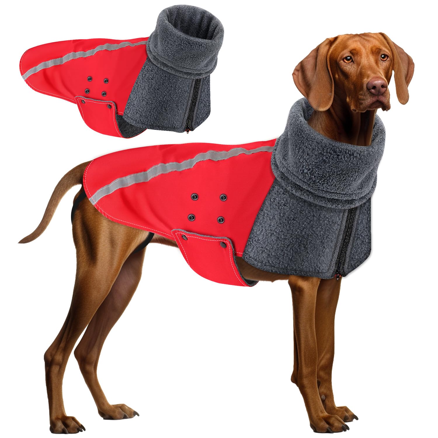 Reflecting stripes for safety-with reflective strips on the back, these winter dog coats ensure that your 4-leg friend is clearly visible during day and night hikes and can avoid an accident.Thanks to the bright colors, you will never let your pet out of your eyes.Suitable for small, medium-sized and large dogs for daily jogging, going for a walk, walking, running, fetching, hiking, skiing and for other outdoor activities.User-friendly --- instead of Velcro fastener, which apparently causes the fur glue, this dog coat enables easy putting on and taking off with a push button clasp with which you can adapt the breast size and which cannot be easily loosened when running or bending down.The Slowton dog vest leaves a slightly accessible belt hole for attachment to the leash and makes it ready for outdoor walks.Flexible design for mobility --- The rear leg area of the dog jacket is provided with elastic leg loops, which on windy days prevent the hair from flying and at the same time offer maximum flexibility.Use the zipper under the neck and the elastic cord around the collar to improve the setting and offer your dog more comfort.The sleeveless winter dog vest has a long back.Wind and water-repellent --- The robust winter jacket for dogs has a durable polyester exterior material that is smooth, snow and wind-repellent as well as resistant to wet and dirt.Soft polar leaf as an inner material is strongly resisted in moisture.It can protect the body from the cold even when wet and dries quickly to keep your puppy warm.Warm scarf --- This dog coat has a warm turtleneck that looks like a scarf.It can be rolled up for additional protection or rolled up as a polo neck for long or short-necked dogs.A cord train adjusts the neck circumference.Feeded with breathable polar trees, it is a good choice for your fur friend in autumn and winter winter cold weather.Reflektierende Streifen zur Sicherheit --- Mit reflektierenden Streifen auf der Rückseite sorgen diese winterlichen Hündchenmäntel dafür, dass Ihr 4-Bein-Freund bei Tag- und Nachtwanderungen gut sichtbar ist und einen Unfall vermeiden kann. Dank der leuchtenden Farben werden Sie Ihr Haustier nie aus den Augen lassen. Geeignet für kleine, mittelgroße und große Hunde zum täglichen Joggen, Spazierengehen, Spazierengehen, Laufen, Holen, Wandern, Skifahren und für andere Outdoor-Aktivitäten. Benutzerfreundlich --- Anstelle von Klettverschluss, der anscheinend ein Ankleben des Pelzes verursacht, ermöglicht dieser Hundemantel das einfache An- und Ausziehen mit einem Druckknopfverschluss, mit dem Sie den Brustumfang anpassen können und der sich beim Laufen oder Bücken nicht leicht lösen lässt. Die SlowTon-Hundeweste hinterlässt ein leicht zugängliches Gurtloch für die Befestigung an der Leine und macht sie für Spaziergänge im Freien bereit. Flexibles Design für Mobilität --- Der hintere Beinbereich der Hundejacke ist mit elastischen Beinschlaufen versehen, die an windigen Tagen das Fliegen der Haare verhindern und gleichzeitig maximale Flexibilität bieten. Verwenden Sie den Reißverschluss unter dem Hals und den elastischen Kordelzug um das Halsband, um die Einstellung zu verbessern und Ihrem Hund mehr Komfort zu bieten. Die ärmellose Winterhundeweste hat einen langen Rücken. Wind- und wasserabweisend --- Die robuste Winterjacke für Hunde verfügt über ein strapazierfähiges Polyester-Außenmaterial, das glatt, schnee- und windabweisend sowie widerstandsfähig gegen Nässe und Schmutz ist. Weiches Polarfleece als Innenmaterial widersteht stark der Feuchtigkeit. Es kann den Körper auch bei Nässe vor Kälte schützen und trocknet schnell, um Ihren Welpen warm zu halten. Warmer Schal --- Dieser Hundemantel hat einen warmen Rollkragen, der wie ein Schal aussieht. Es kann für zusätzlichen Schutz aufgerollt oder als Polohals für Lang- oder Kurzhalshunde aufgerollt werden. Ein Kordelzug passt den Halsumfang an. Mit atmungsaktivem Polarfleece gefüttert, ist es eine gute Wahl für Ihren Fellfreund im Herbst und Winter Winter kaltes Wetter.SlowTon Wintermantel für Hunde, Warmes Futter aus Polar Fleece Außenjacke für Hunde mit Rollkragenschal Reflexstreifen Einstellbar Wasserdicht Winddicht Welpenweste Weiches Haustier (L , Rot) L Rot