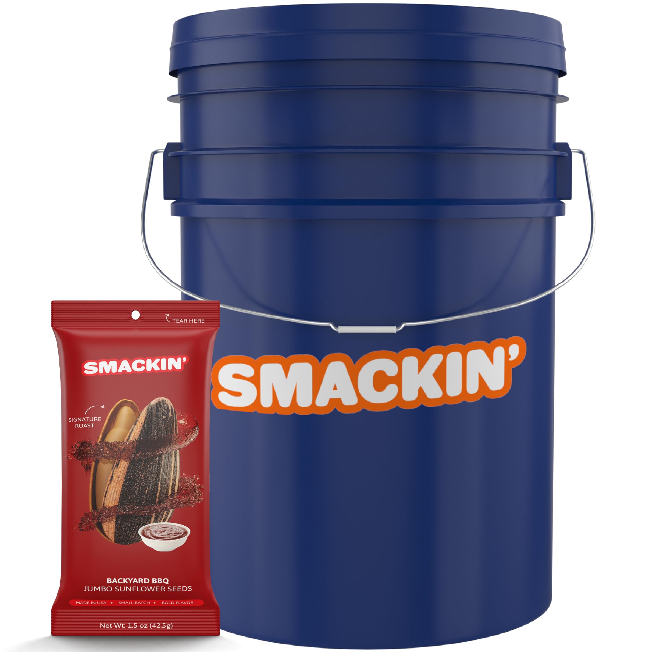 SMACKIN' Sunflower Seeds | Roasted Jumbo Sunflower Seeds | 54 Bag Seed Bucket | 1.5 Ounce Flavored Sunflower Seeds | Small-Batch American Made Sunflower Seeds (Backyard BBQ)