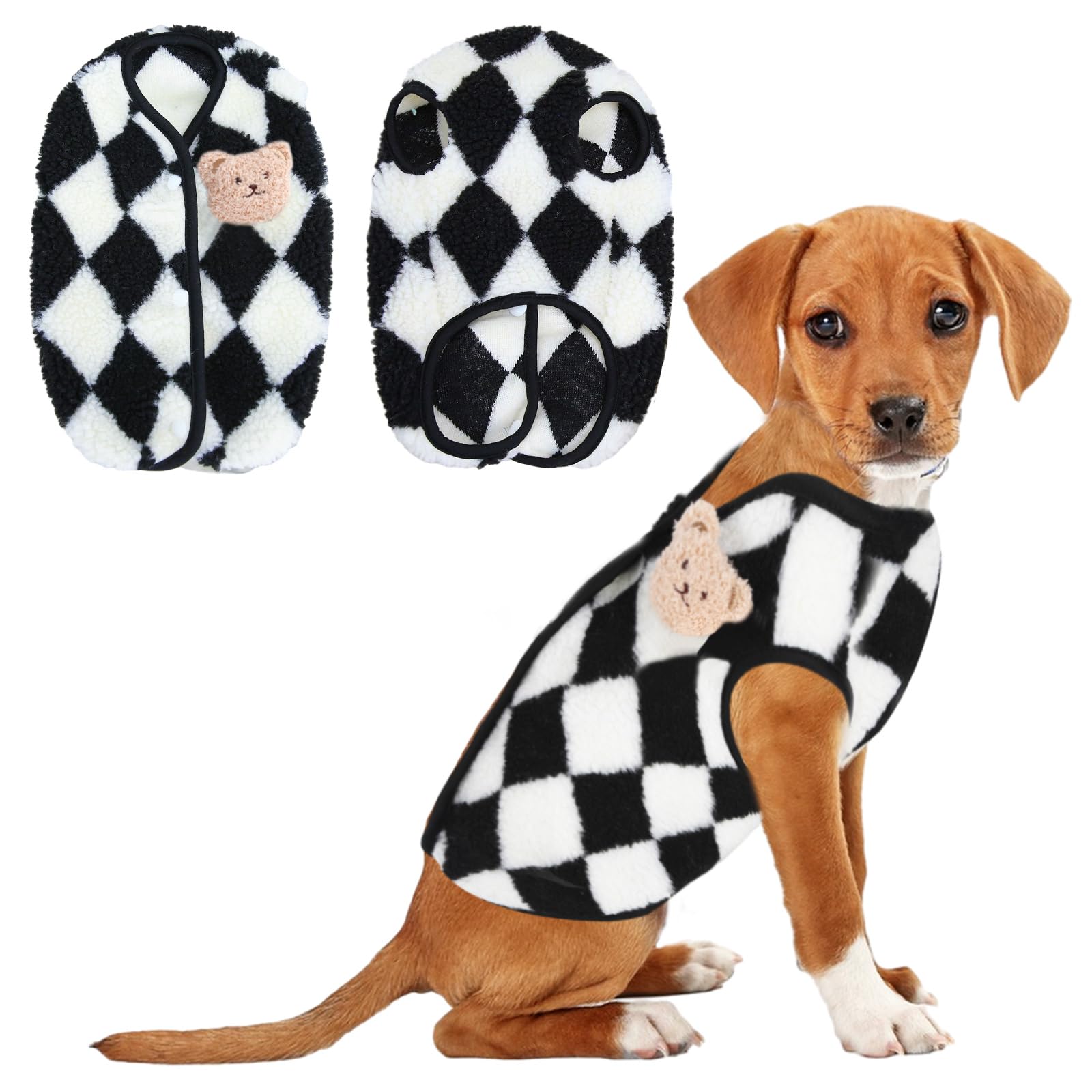 Dog Jumper,Dog Jumper for Small Medium Dogs Winter Fleece Warm Puppy Jacket Soft Dog Cat Jumper Pet Winter Clothes for Autumn,Winter Cats,Dogs Clothes,Welsh Corgi,Yorkshire Terrier,Chihuahua,Beagles Outfit (Brown Black,L XL 2XL) Product Details: Package Includes:1×Dog Jumper Color:Brown Material:Shaker Fleece Size: L XL XXL-Please refer to the size chart. Weight:72g 86g 97g Features: 1.Simple Fashionable:Simple colour matching and design,fashionable and simple,make your pet look more beautiful. 2.Convenient:Button design,easy to take care of,easy for your pet to wear and take off. 3.Easy to Clean:The dog jumper can be machine or hand washed,very convenient, also can be tumble dried or air dried. Warm Tips:Please measure your pet's size before buying,you could choose a suitable size according to our size chart. (Recommended to choose a size larger than the measuring size)SizeWarm dog sweater is suitable for medium and small dogs.Please refer to our size table to choose the appropriate size before purchg.It is recommended to buy a size larger than the measured size.If you have any questions about our products,please feel free to contact us,we will provide you with after-sales,you can buy with confidence. Widely UseWinter fleece jumper vest sweaters are comfortable to wear and exquisite in workmanship.It is very suitable for daily wear in autumn and winter.It is suitable for small and medium pet cats and dogs,such as puppies,Chihuahuas,Yorkie,King Charles beagles,Cockapoo,Jack Russell Terrier,Beagle,etc. Fashion BreathableThere are two colors to choose from: brown and black.This Small dog jumper is simple in color and designed with a diamond pattern.The back is a cardigan design,which is easy to wear and take off,which is convenient for your pet to go to the toilet. With cute trinkets,it makes your pet more fashionable and charming in the cold season. Soft WarmOur dog fleece jumper is made of single-layer high-quality fleece fabric,which is soft and elastic.It is very friendly to the skin of pet cats and dogs.It is comfortable and breathable to wear,so that your furry friend can feel comfortable and warm in the cold weather of autumn and winter,applicable both indoors and outdoors. Warm Dog SweaterThe dog jumper is available in three sizes,including L XL 2XL,which is suitable for small and medium-sized dogs,and brown and black colors for you to choose from.Please measure the size of your pet before purchg,and you can choose according to our size table.(It is recommended to choose a size larger than the measured size).
