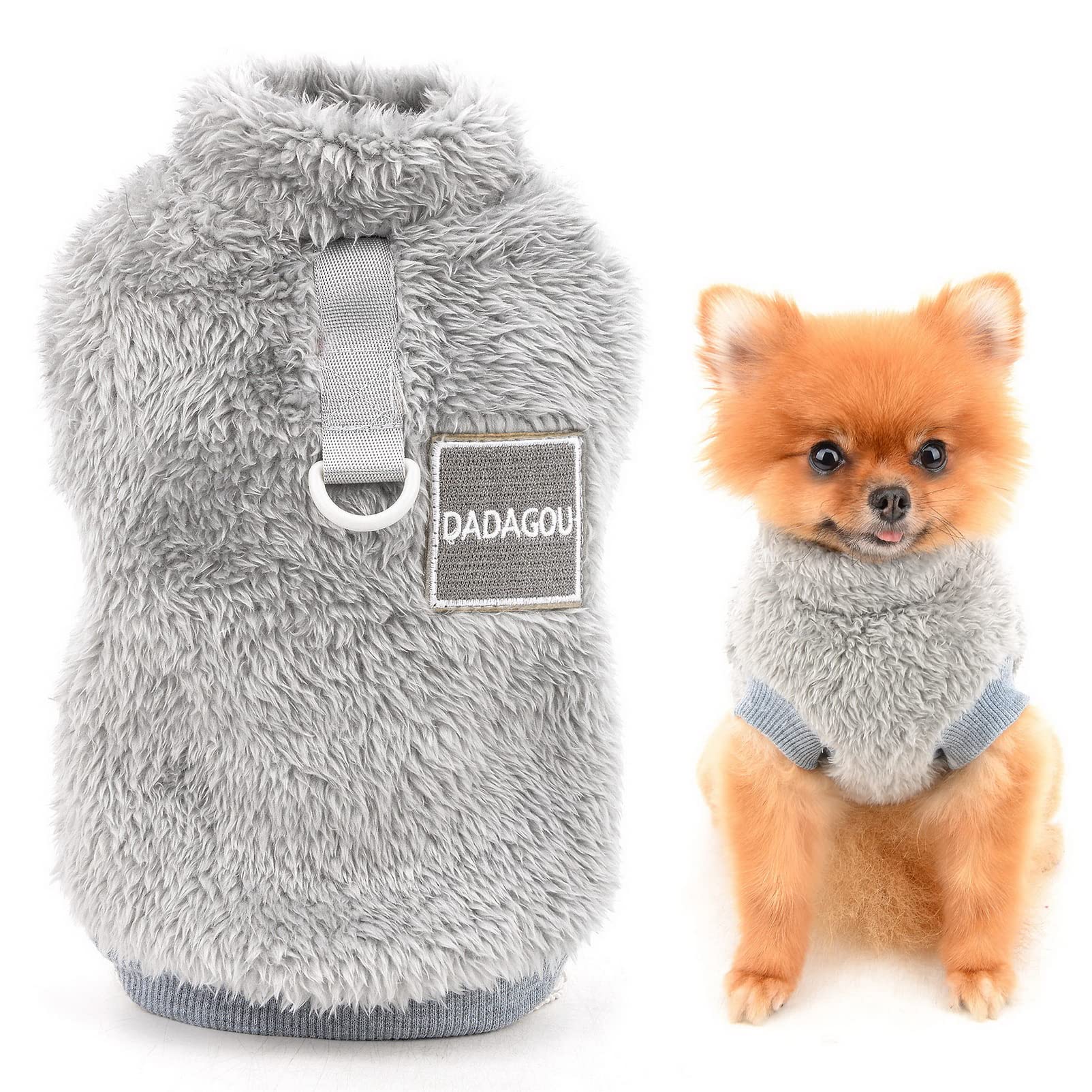 Smalllee_lucky_Store Pets-Sherpa-Fleece sweater vest turtleneck sweater with D-ring soft sweatshirt for small dogs cats puppy yorkie chihuahua warm autumn winter clothing gray l l gray