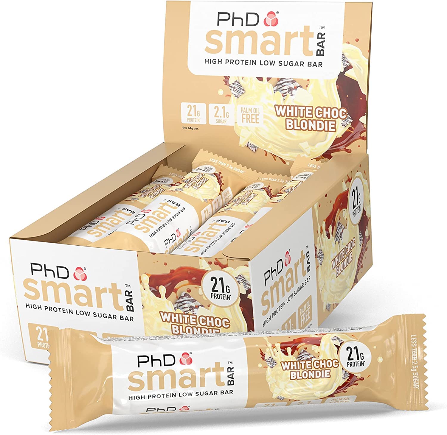 Smart Bar is the latest bar from PhD Nutrition, known for being at the forefront of the dietary supplement industry. Smart Bar from PHD is a protein bar, with a super taste, triple layer, low in sugars and without palm oil which allows you to have your daily dose of proteins without excess sugars. Each bar has a delicious layer of caramel, crunchy cocoa, all coated in delicious chocolate for a gourmet break. Their wide range of flavors offers users an alternative source of protein made with natural ingredients and no artificial sweeteners. It was also necessary to be able to remain as nutritionally correct as possible to be an acceptable option for the muscle. Protein is essential to nourish the muscles, but being able to change options and tastes from time to time is pleasant and avoids monotony. This is why PHD created Smart Bar, a delicious protein bar made from high quality proteins to make it a moment of pleasure with less than 2 g of sugar whatever the flavor. Smart Bar is based on a mixture of proteins naturally rich in BCAAs from milk proteins which greatly help with post-exercise recovery. If a Smart Bar provides 20 g of protein, it is also formulated with low GI carbohydrates and naturally sweetened with fruit juices containing fiber. PHD has also been strict about using unnecessary ingredients like preservatives or gelatin. Smart Bar is available in several flavors: Caramel Crunch, Cookies Cream, Dark Chocolate Raspberry, Choco Peanut Butter, Chocolate Brownie and White Chocolate.Great taste, triple layer. Less than 1g of sugar per bar. 20g of protein. Smart Bar est la dernière-née des barres de PhD Nutrition, connu pour être à l'avant-garde de l'industrie des compléments alimentaires. Smart Bar de PHD est une barre de protéines, avec un super goût, triple couche, faible en sucres et sans huile de palme qui permet d'avoir sa dose quotidienne de protéines sans excès de sucres.Chaque barre est dotée d'une délicieuse couche de caramel, de croustillants de cacao, le tout enrobé de délicieux chocolat pour une pause gourmande. Leur large gamme de saveurs offre aux utilisateurs une source alternative de protéines à base d'ingrédients naturels et sans édulcorants artificiels. Il fallait également pouvoir rester le plus nutritionnellement correct possible pour être une option acceptable pour le muscle. La protéine est indispensable pour nourrir les muscles, mais pouvoir changer de temps en temps d'option et de goût est agréable et évite la monotonie. C'est pourquoi PHD a créé Smart Bar, une délicieuse barre de protéines issue de protéines de haute qualité pour en faire un moment de plaisir avec moins de 2 g de sucre quel que soit le parfum. Smart Bar est à base d'un mélange de protéines naturellement riche en BCAA issue des protéines de lait qui aident fortement à la récupération post exercice. Si une Smart Bar apporte 20 g de protéines, elle est également formulée avec des glucides à faible IG et naturellement sucrés avec des jus de fruits contenant des fibres. PHD a également été strict quant à l'usage d'ingrédients inutiles comme les conservateurs ou la gélatine. Smart Bar est disponible dans plusieurs saveurs : Caramel Crunch, Cookies Cream, Chocolat Noir Framboise, Choco Peanut Butter, Brownie Chocolat et Chocolat Blanc.Supers goûts, triple couche. Moins d'1 g de sucre par barre. 20 g de protéines.