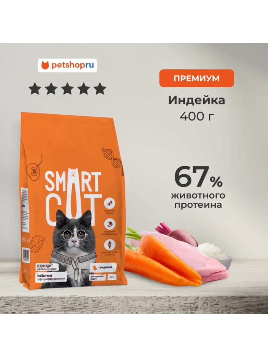 Smart Cat Сухой корм для взрослых кошек с индейкой, 0,4 кг