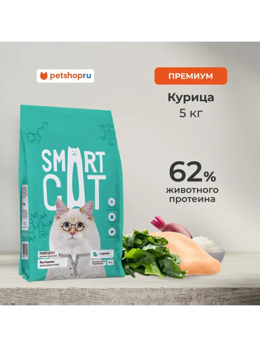 Smart Cat dry food is developed by professionals for true furry geniuses! This complete and balanced food with a carefully selected composition and essential nutrient complex will help keep your pet healthy and active to achieve great goals! Made without the addition of artificial colors, preservatives, flavors, or GMOs. Delight your pet with Smart Cat dry food every day!