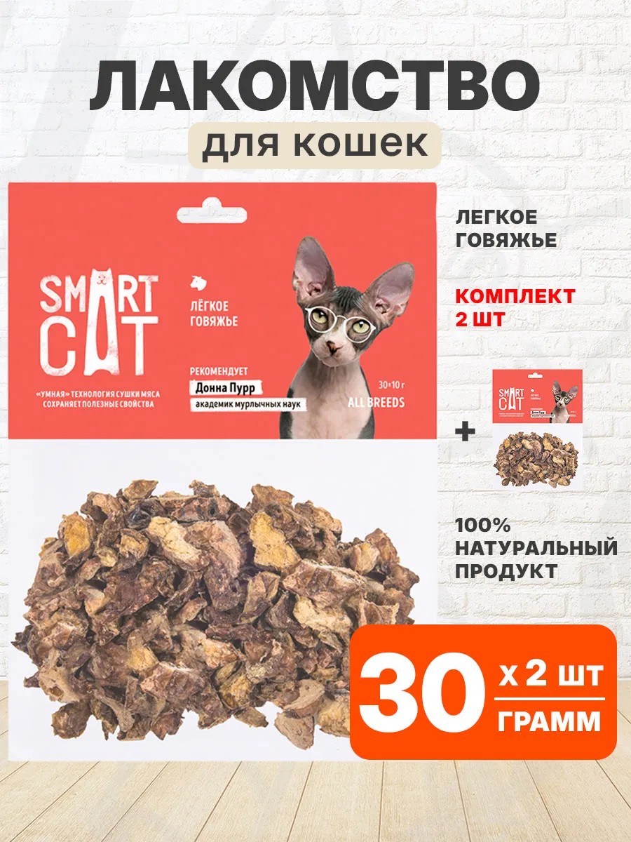 Достижения и прилежное поведение нужно поощрять, лакомства Smart Cat станут отличной наградой и поднимут настроение вашему хвостику. Говяжье лёгкое — ароматное и легкоусвояемое лакомство для кошек, богатое витаминами и микроэлементами, которые оказывают положительное влияние на состояние кожи и шерсти. Низкокалорийное, замечательно усваивается организмом
