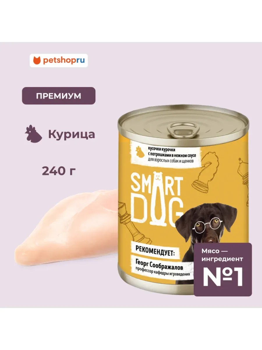 Smart Dog Консервы для собак с курицей и потрошками, 240г, влажный корм